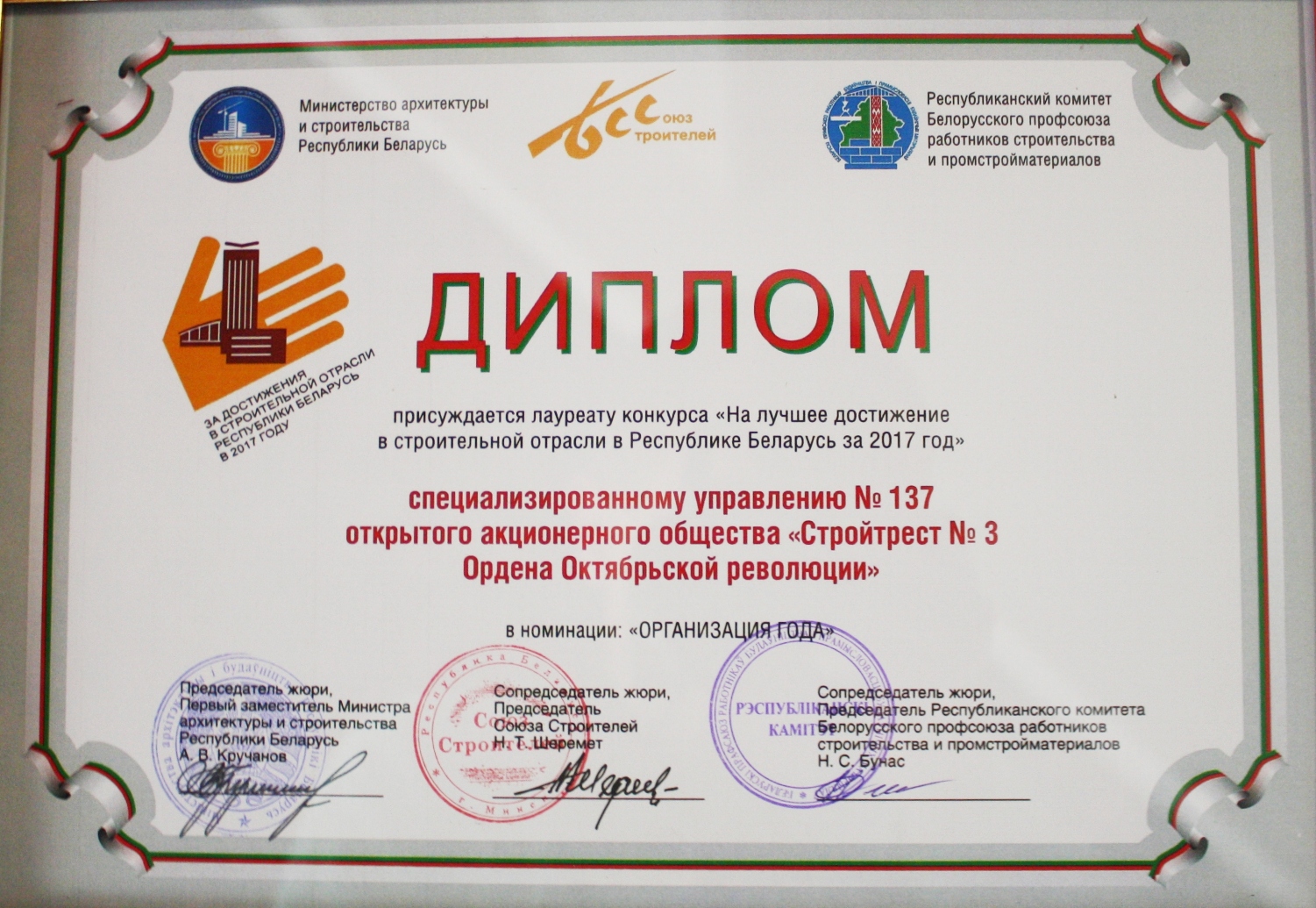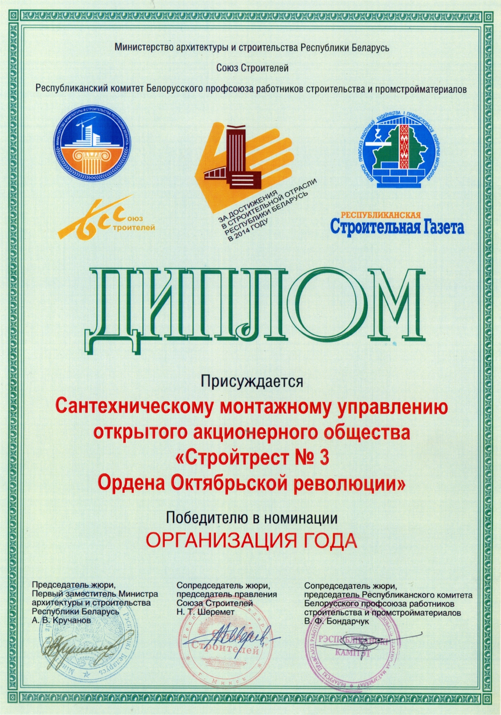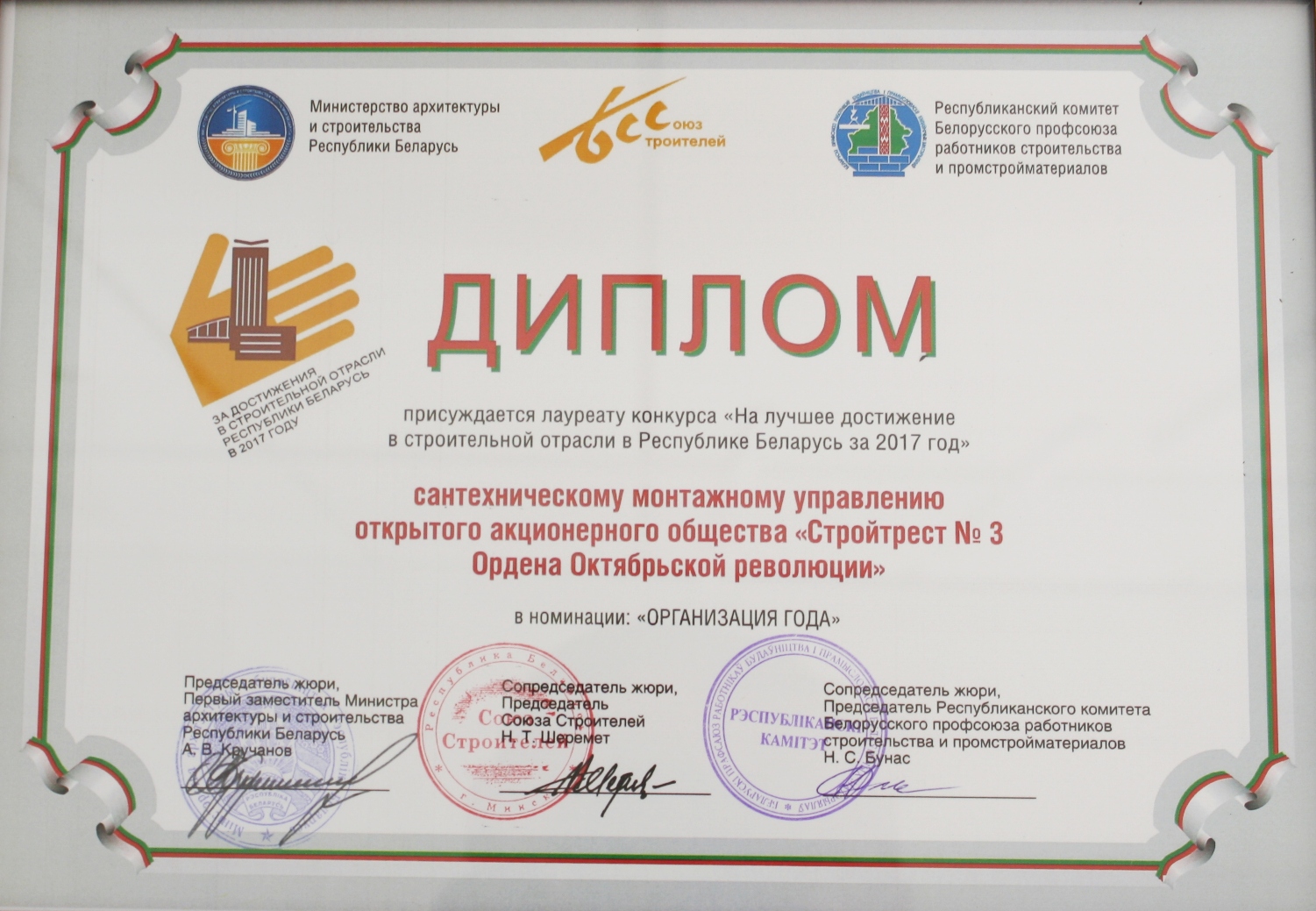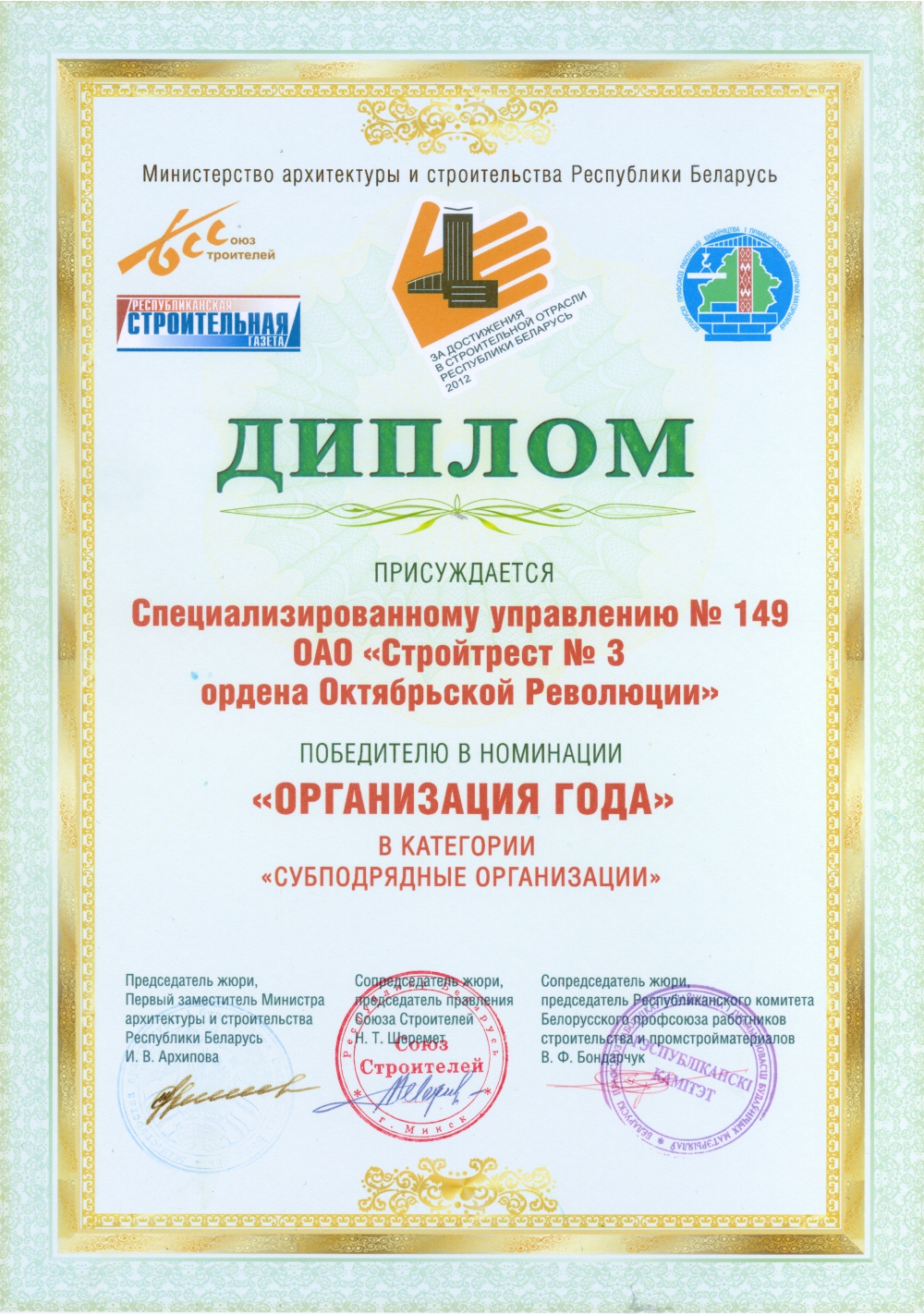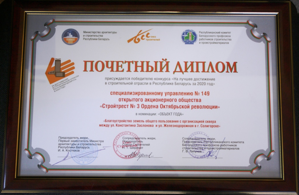 За высокія дасягненні ў будаўнічай галіне трэст і яго работнікі былі шматразова адзначаны ўзнагародамі рэспубліканскага і міжнароднага ўзроўню.