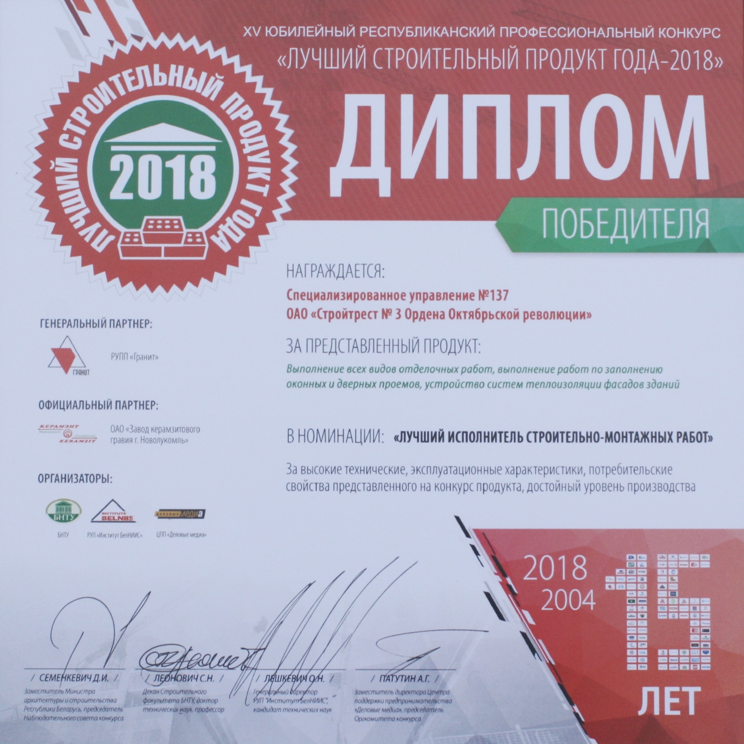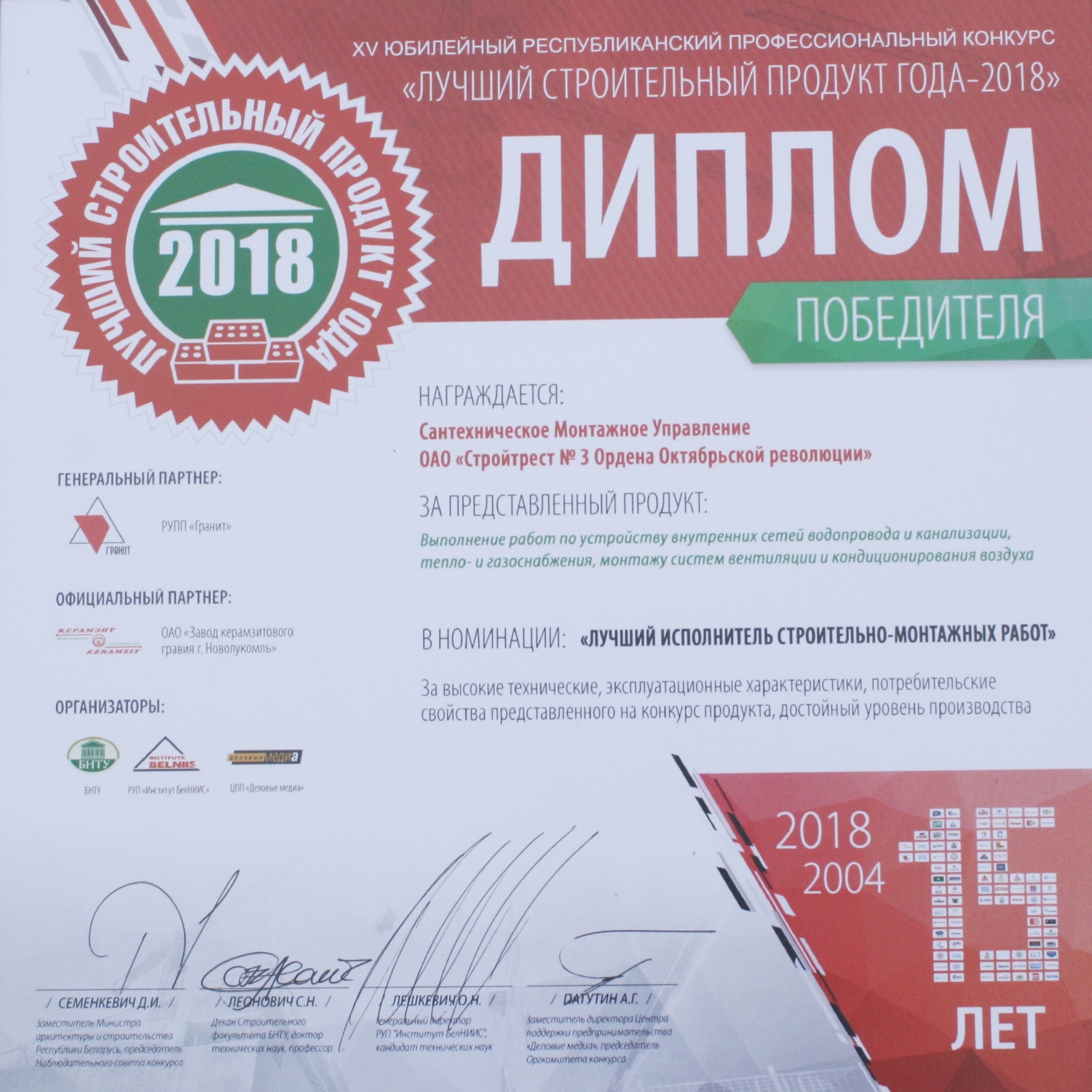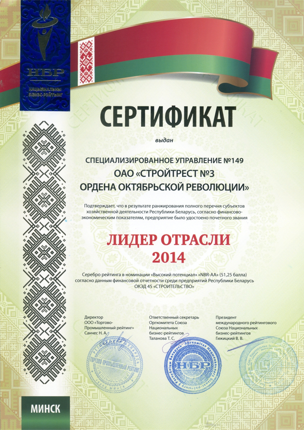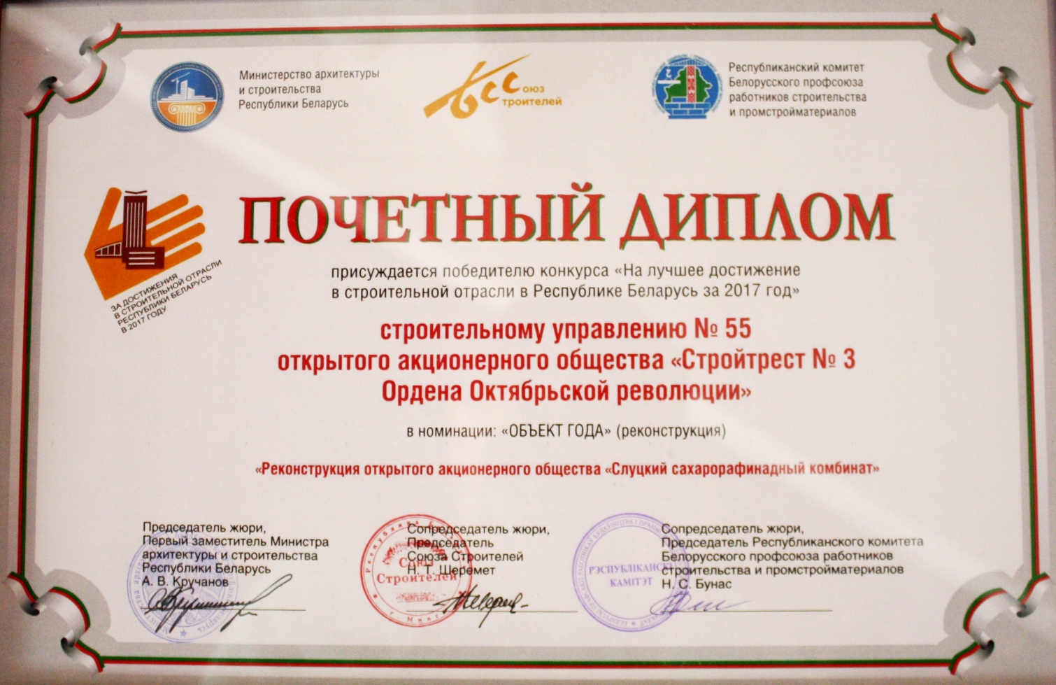 За высокія дасягненні ў будаўнічай галіне трэст і яго работнікі былі шматразова адзначаны ўзнагародамі рэспубліканскага і міжнароднага ўзроўню.