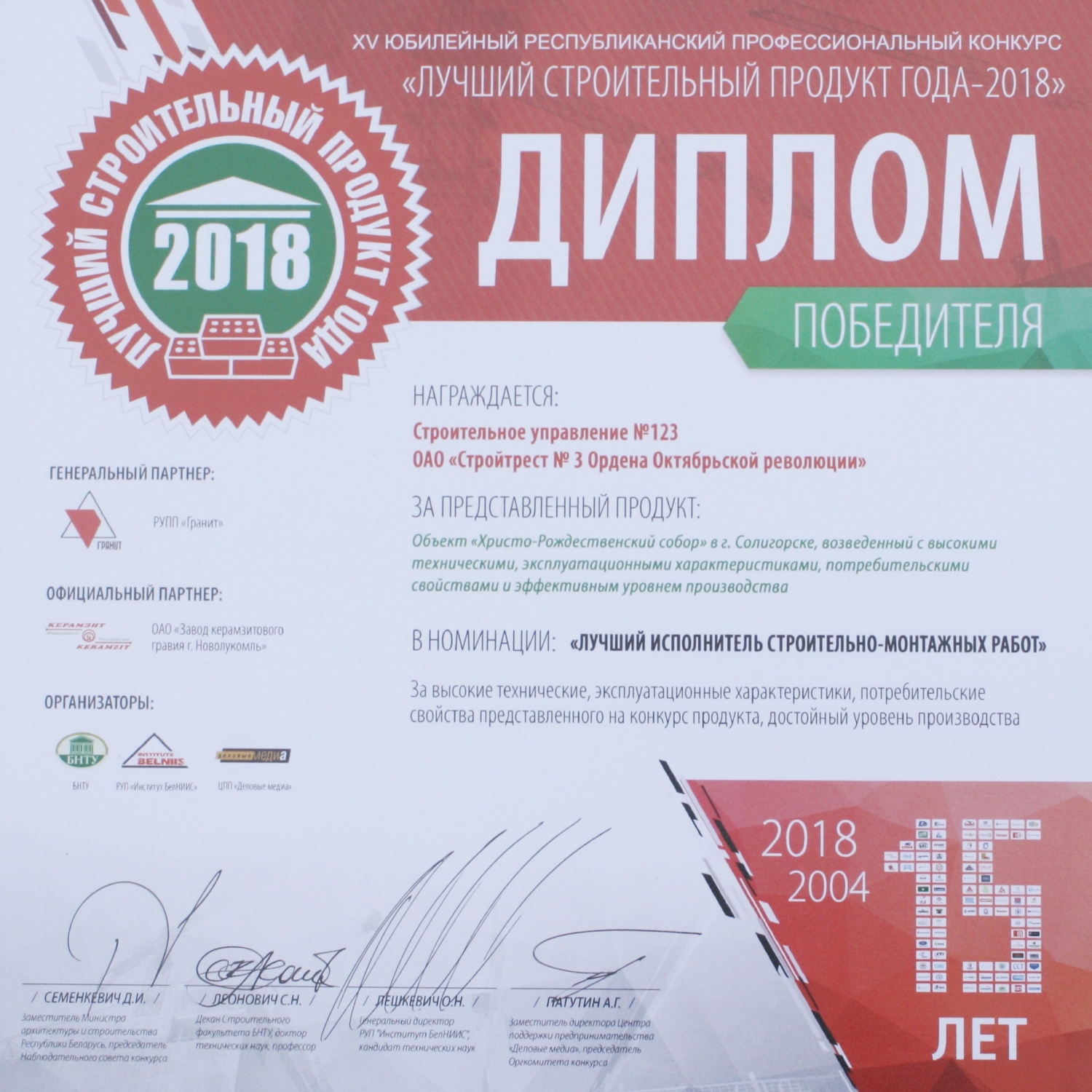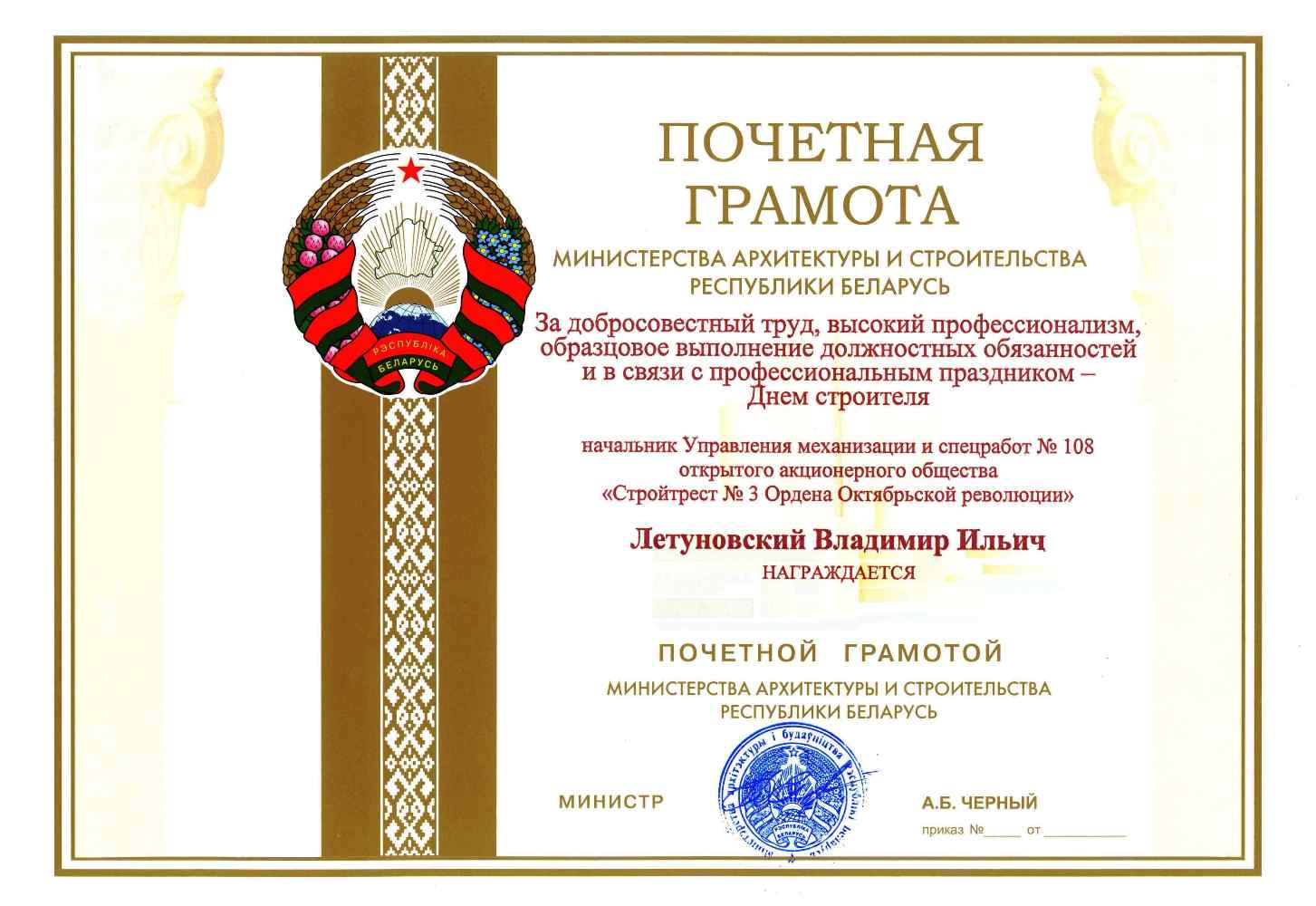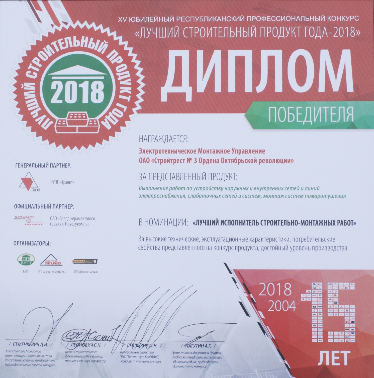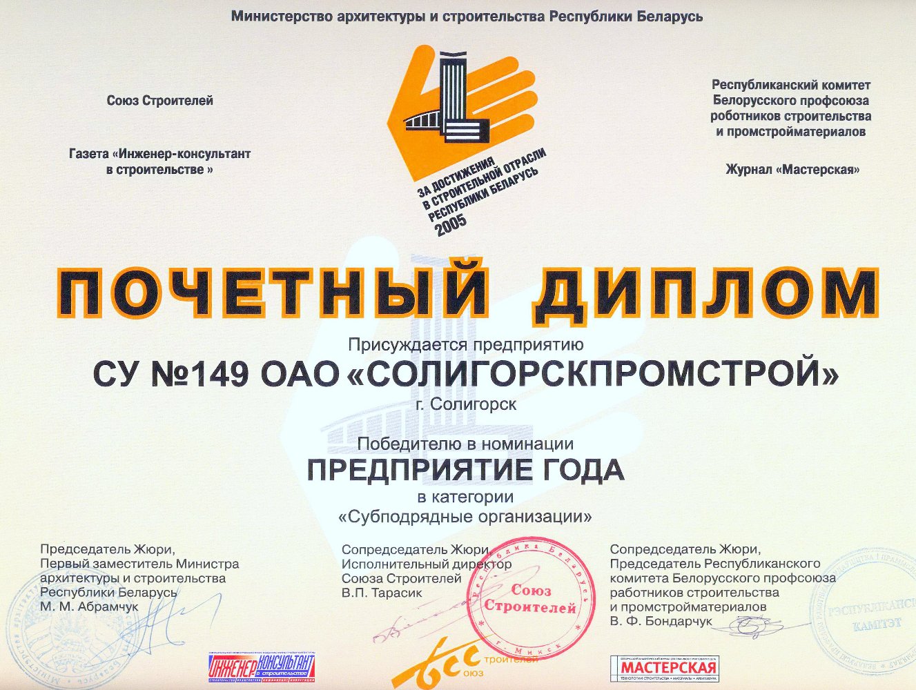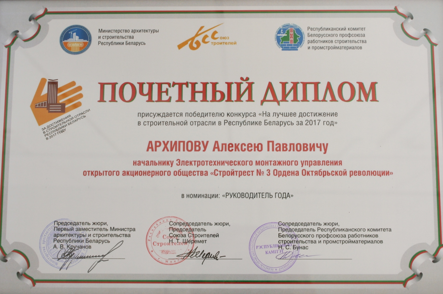 За высокія дасягненні ў будаўнічай галіне трэст і яго работнікі былі шматразова адзначаны ўзнагародамі рэспубліканскага і міжнароднага ўзроўню.