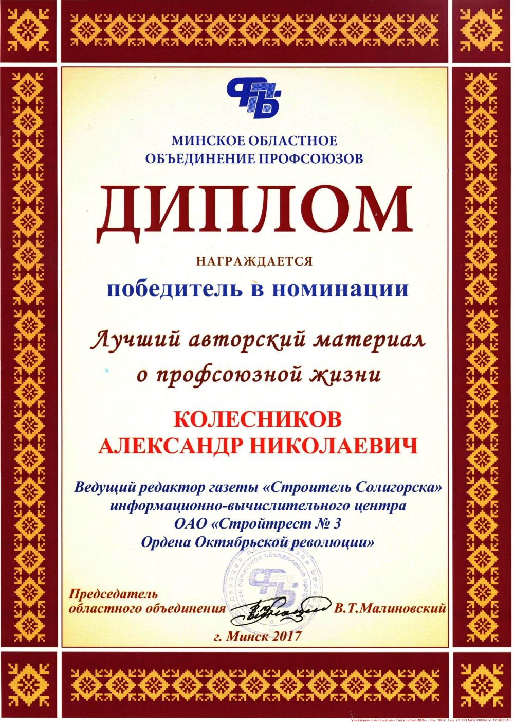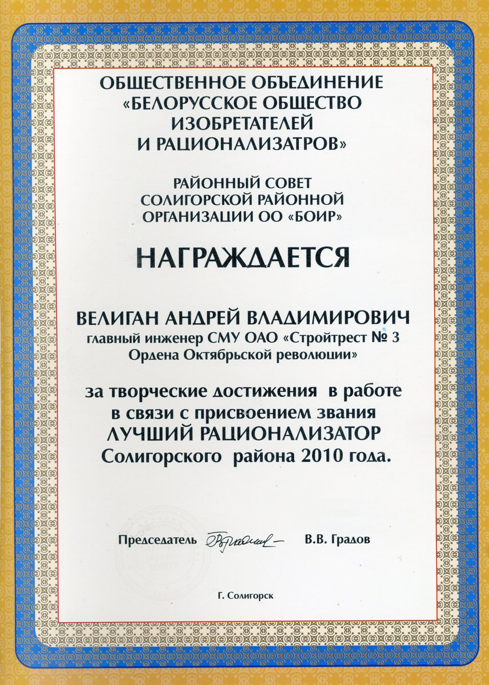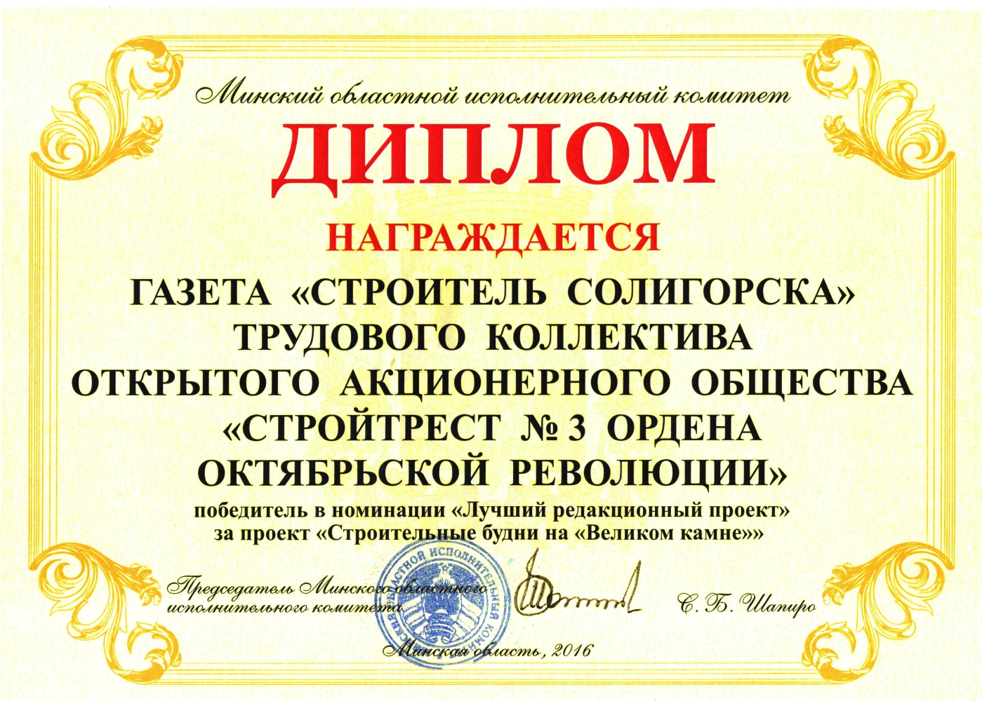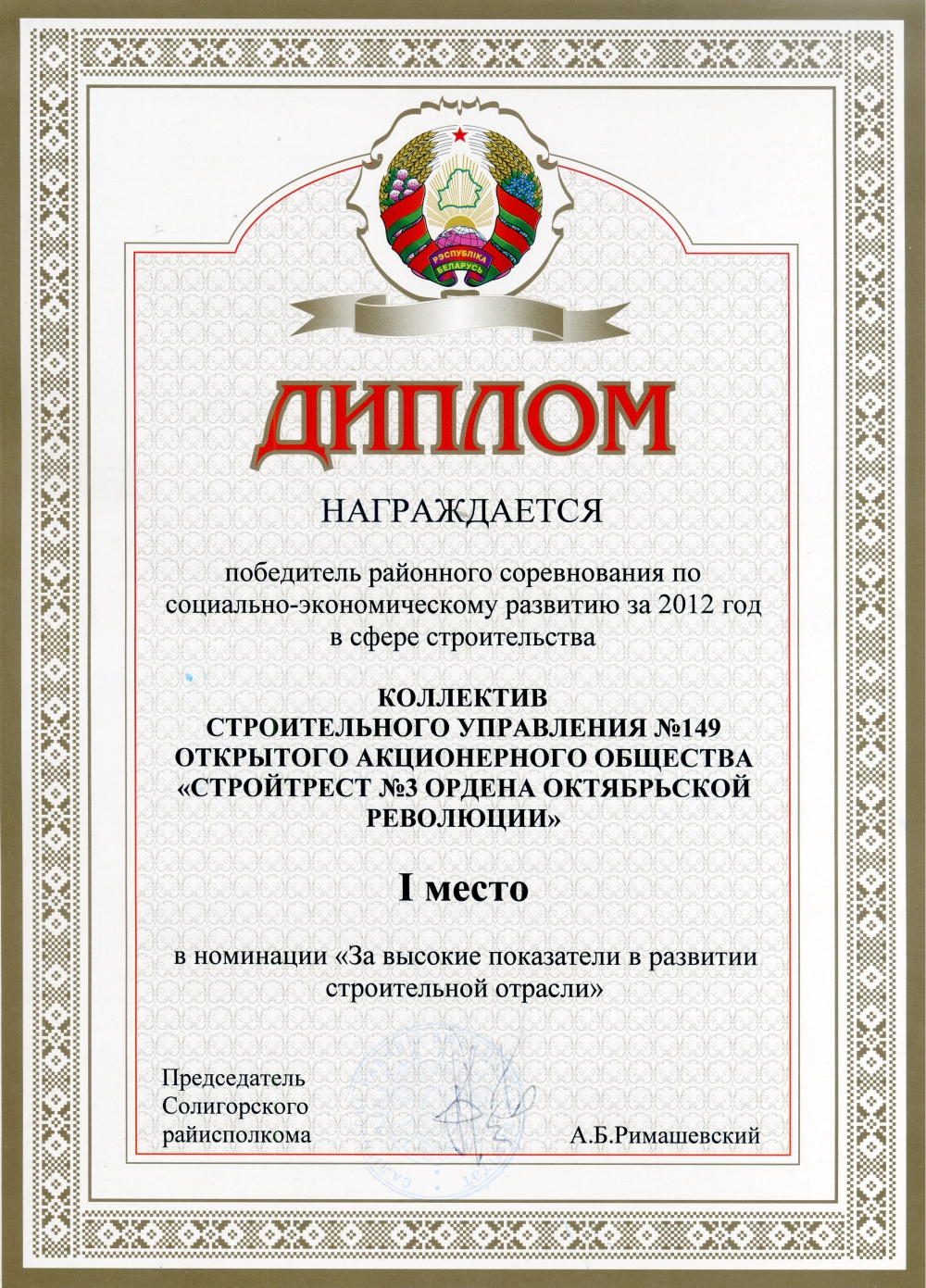 За высокія дасягненні ў будаўнічай галіне трэст і яго работнікі былі шматразова адзначаны ўзнагародамі рэспубліканскага і міжнароднага ўзроўню.