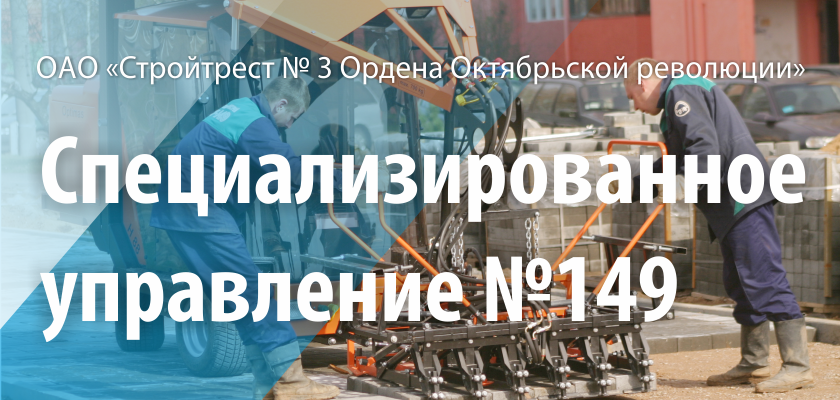 Специализированное управление №149 ОАО «Стройтрест №3” образовано 5 мая 1975 года путем выделения из УМС-108 ИТР, рабочих, части механизмов по приказу Минпромстроя БССР №148.Начальник управления: Шатровский Антон Витальевич