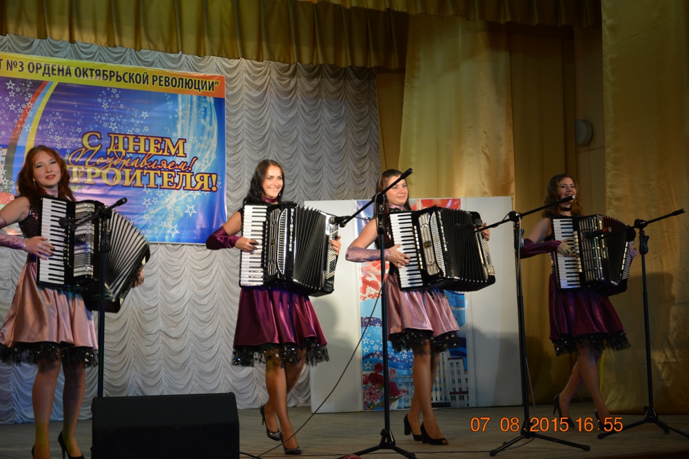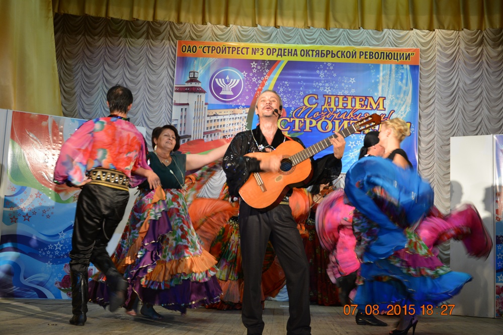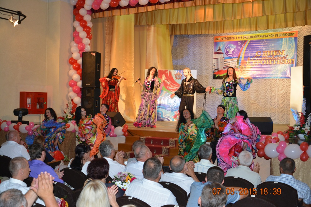 Свои поздравления в этот день строителям дарили дети и внуки работников предприятия, вышедшие на сцену с литературной композицией о стройтресте № 3, а также студия бального танца «Шарм», солистка эстрадного оркестра Главного управления внутренних дел Республики Беларусь, полуфиналистка Еврофеста, участница украинского проекта «Голос» Анна Благова, квартет аккордеонисток «Тутти». Массу положительных эмоций подарило нашим строителям выступление солиста Большого театра оперы (бас) Анатолия Сивко (в творческой биографии артиста значатся: сотрудничество с дирижером Владимиром Спиваковым, выступление с сольным концертом на фестивале Валерия Гергиева, выступления на всемирно известных европейских сценах, участие в многочисленных международных конкурсах вокалистов).
