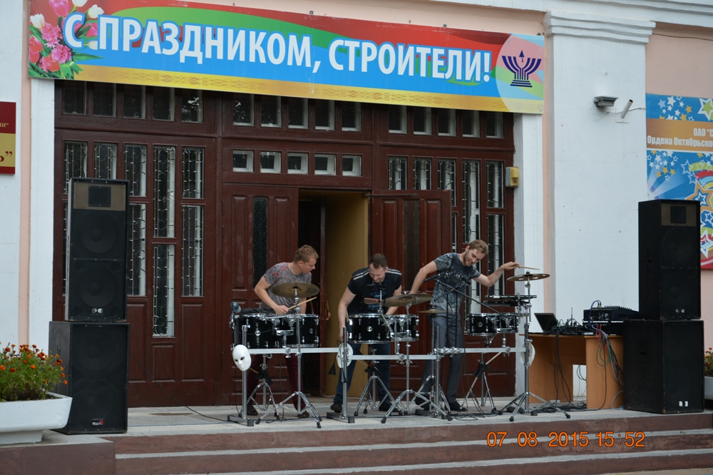 До начала торжественного собрания, у главного входа ДК, зажигательными мелодиями настраивало публику на праздник трио барабанщиков «Stress». Строители дружными аплодисментами поблагодарили музыкантов, исполнивших живую, модерновую музыку, сделавших открытие праздника незабываемым.