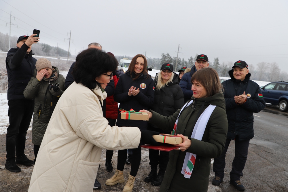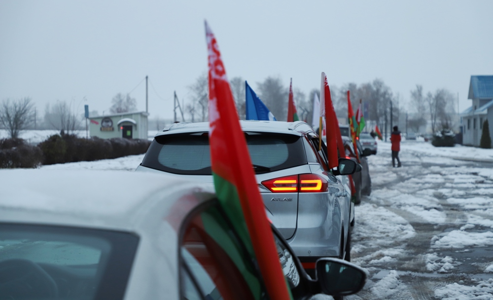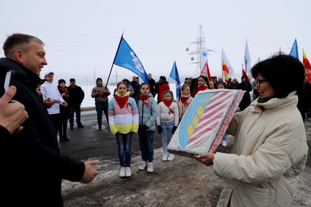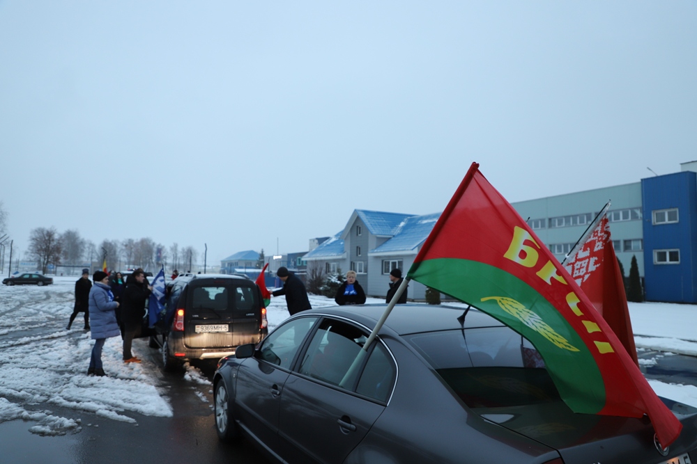 Солигорчане, переняв эстафету акции на автоколонне у Любанского района, передали ее соседнему Слуцкому. Традиционно соседние районы обменялись государственными флагами и посланиями для молодого поколения от ветеранов Великой Отечественной войны и известных людей своего региона. Кроме того, каждый регион вместе с эстафетой передает символическую шестеренку, которая в последующем станет частью единого часового механизма. От символических региональных "шестеренок" - к общенациональному единству: главная идея акции. Символические элементы - шестеренки - собираются со всех районов для финального действия пробега, финал которого очень скоро состоится в Минске.