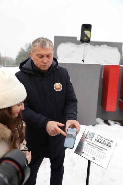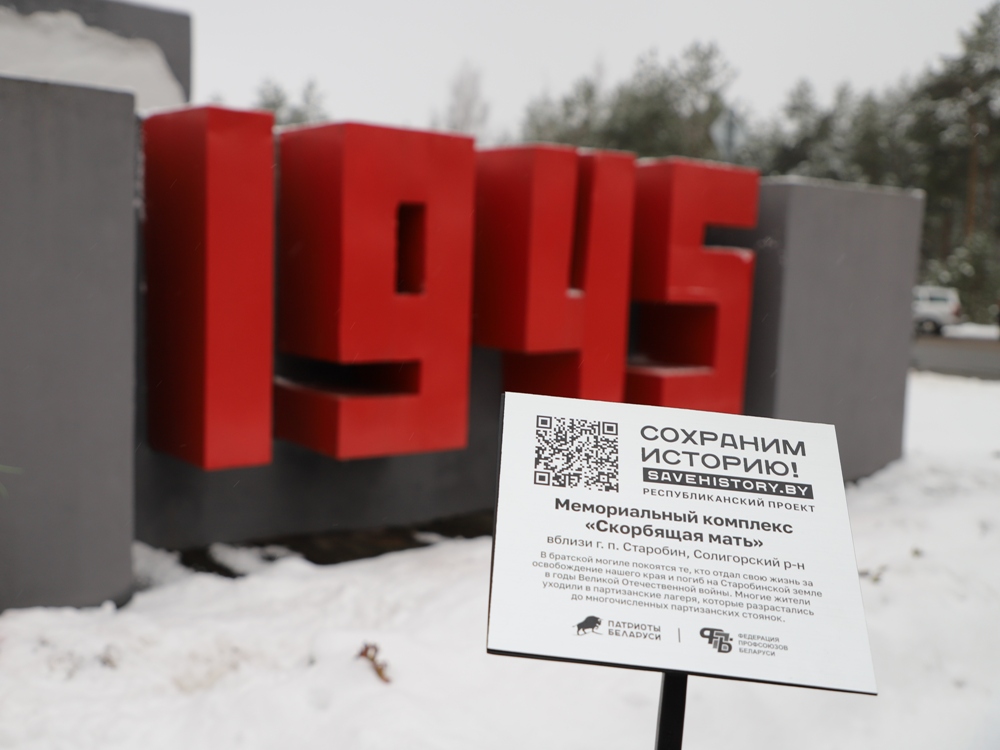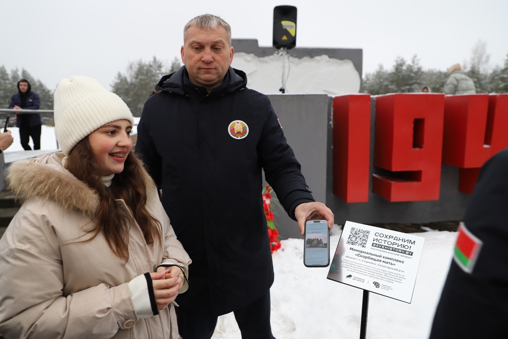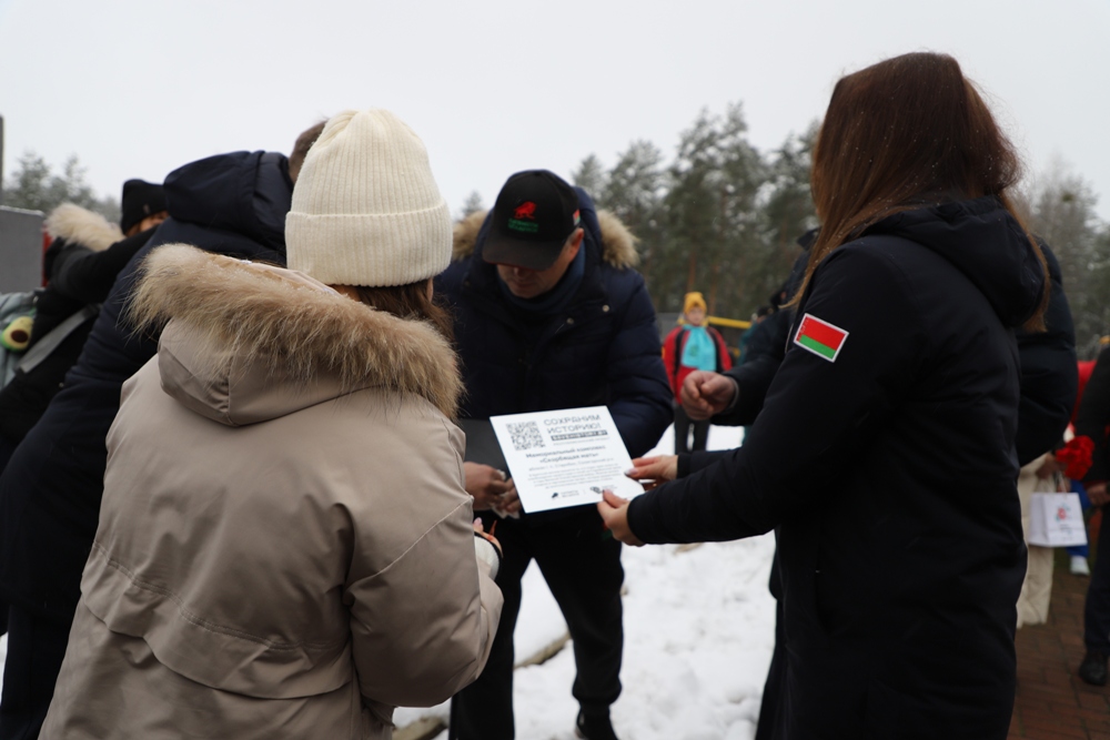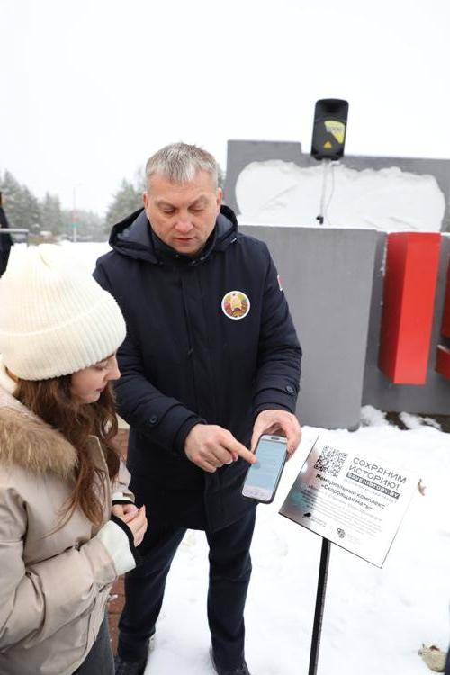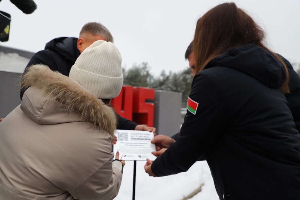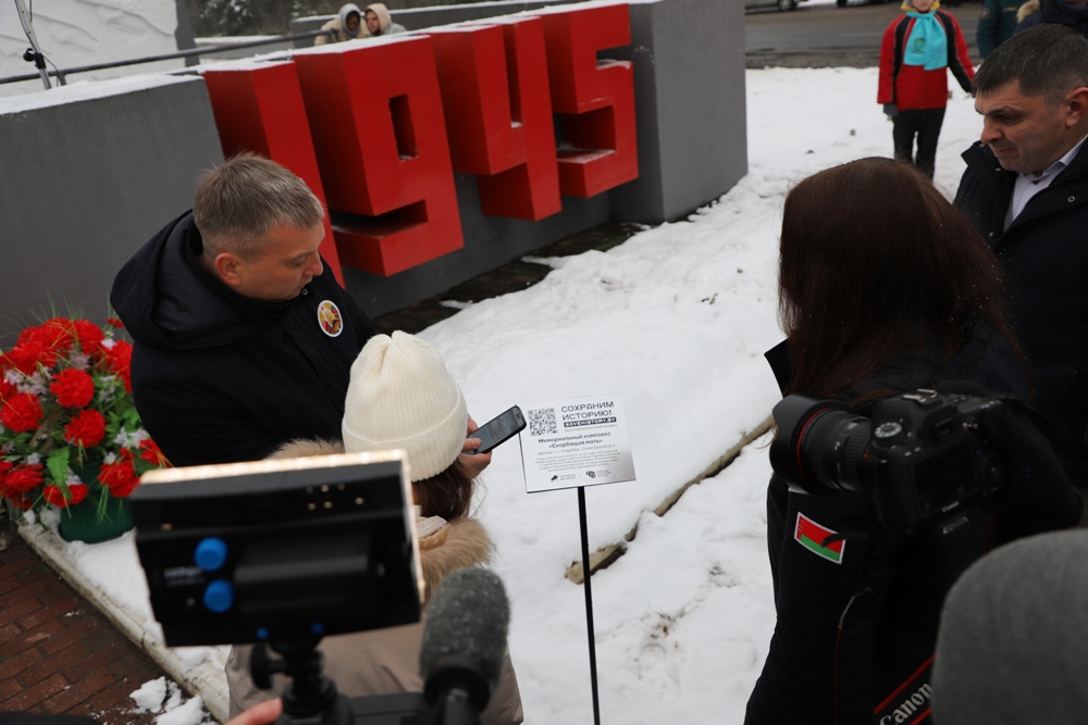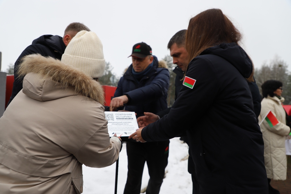 Между двумя точками маршрута участники провели торжественный митинг у мемориального комплекса "Скорбящая мать" на Солигорщине и установили табличку с QR-кодом. Теперь каждый посетитель сможет просканировать ее и узнать историю памятного солигорчанам места Великой Отечественной войны.