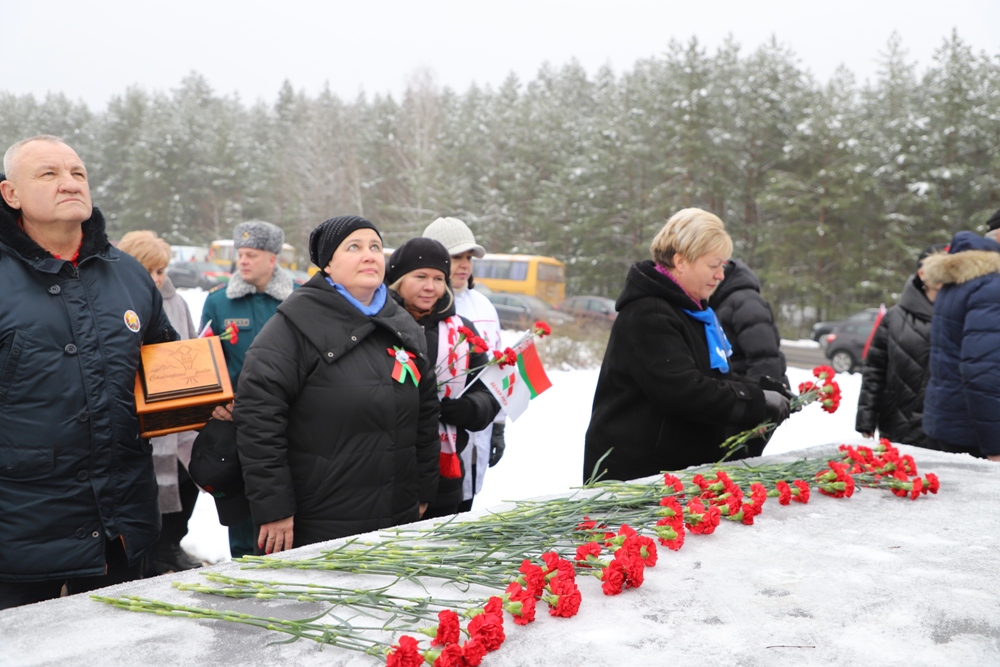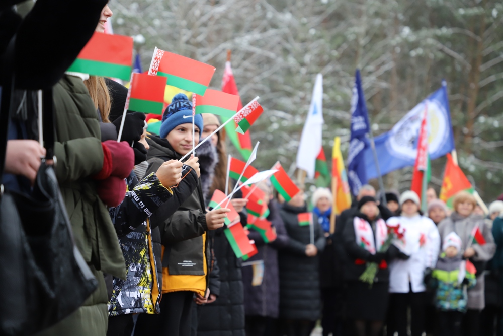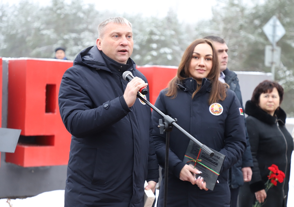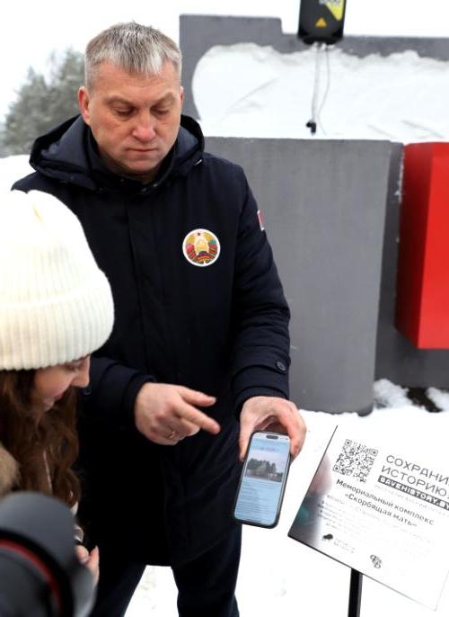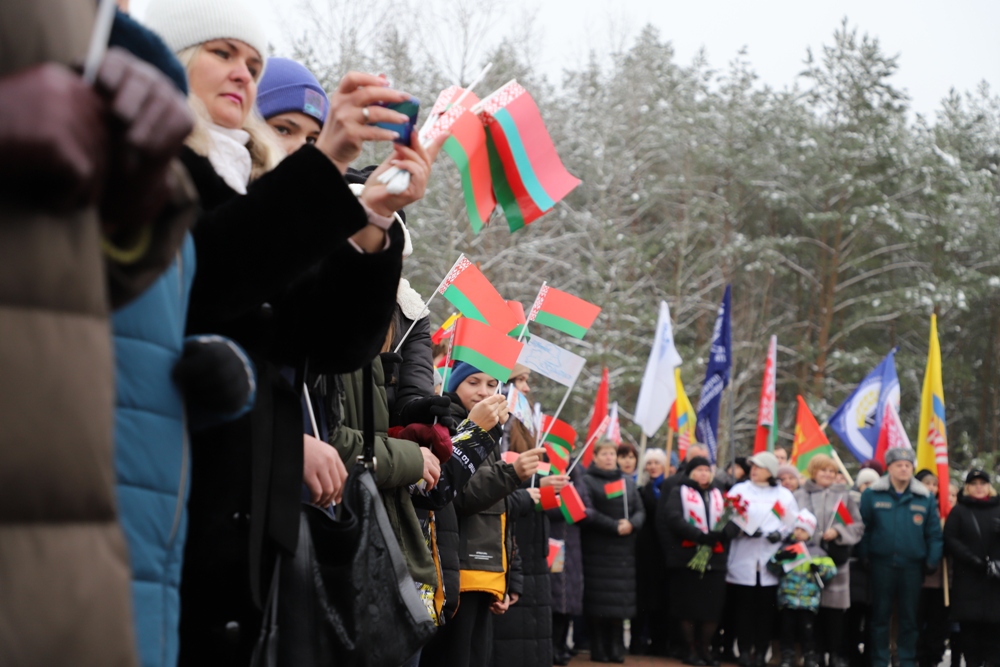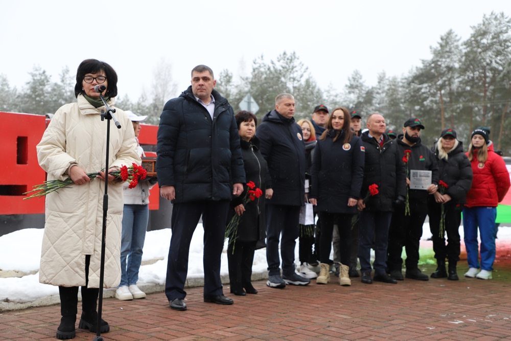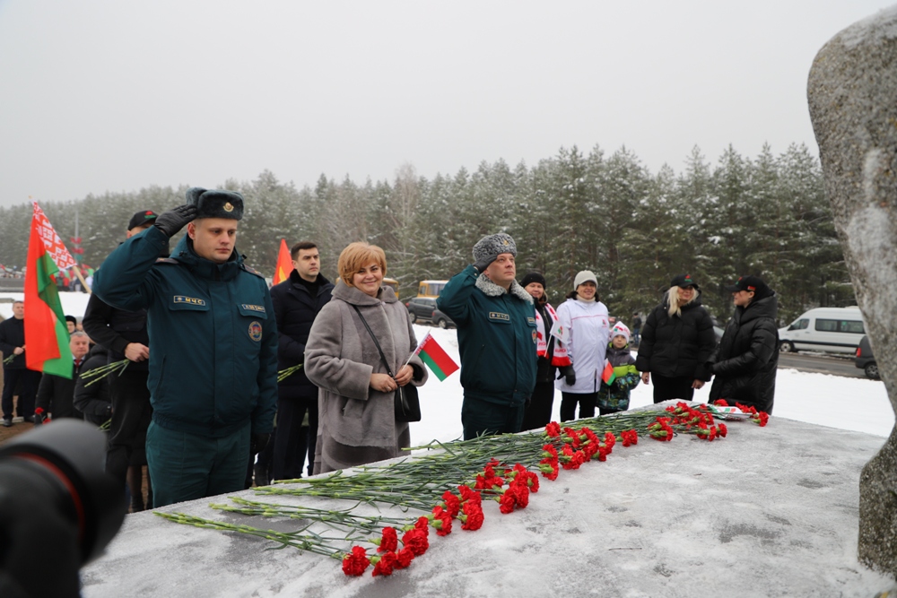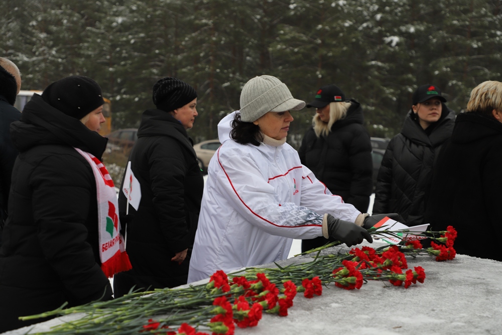 Между двумя точками маршрута участники провели торжественный митинг у мемориального комплекса "Скорбящая мать" на Солигорщине и установили табличку с QR-кодом. Теперь каждый посетитель сможет просканировать ее и узнать историю памятного солигорчанам места Великой Отечественной войны.