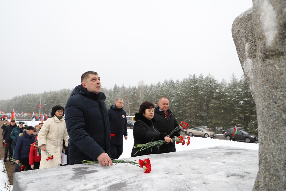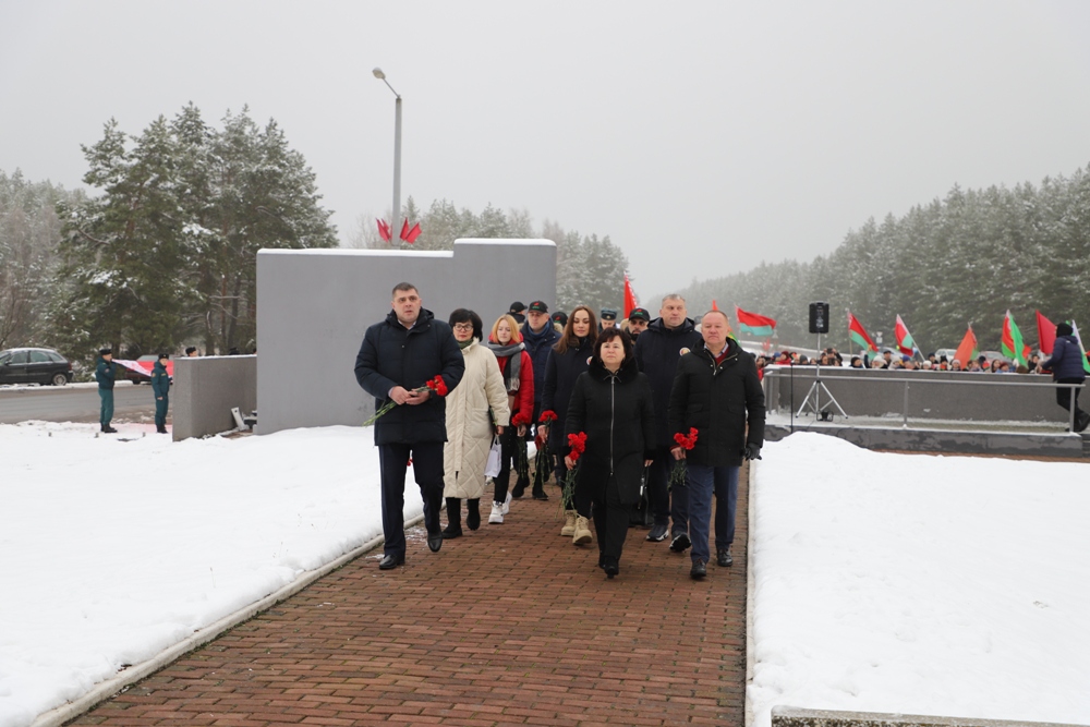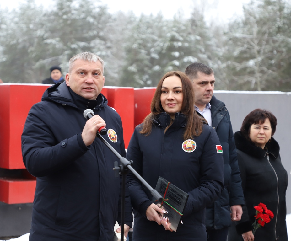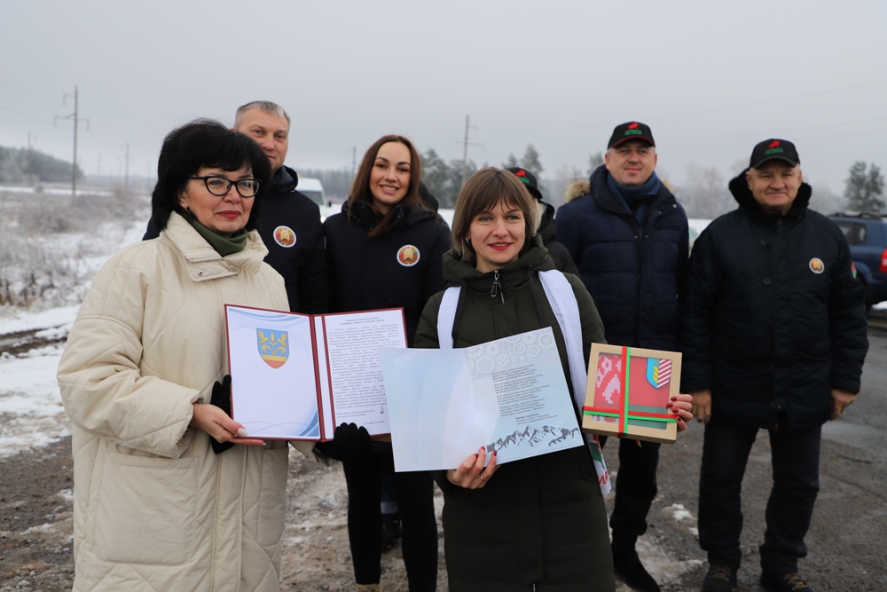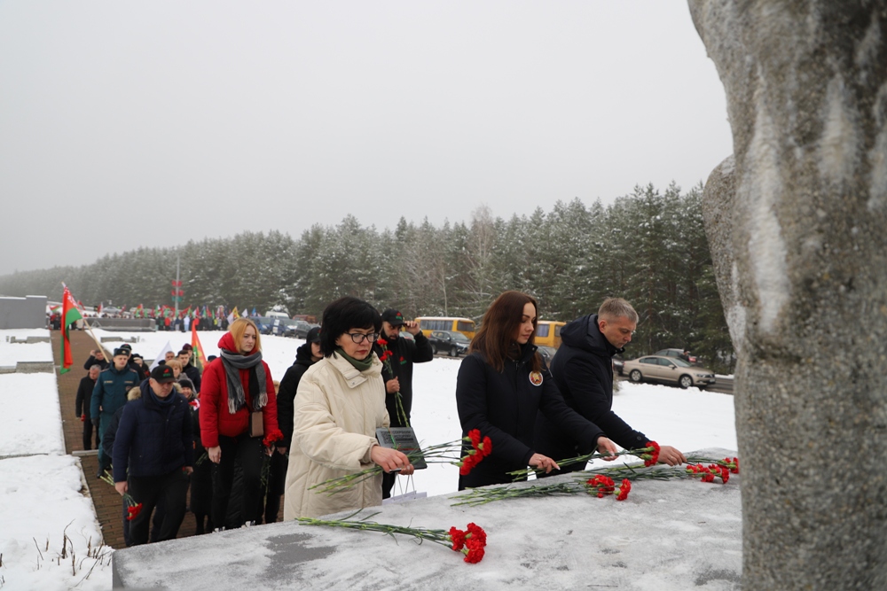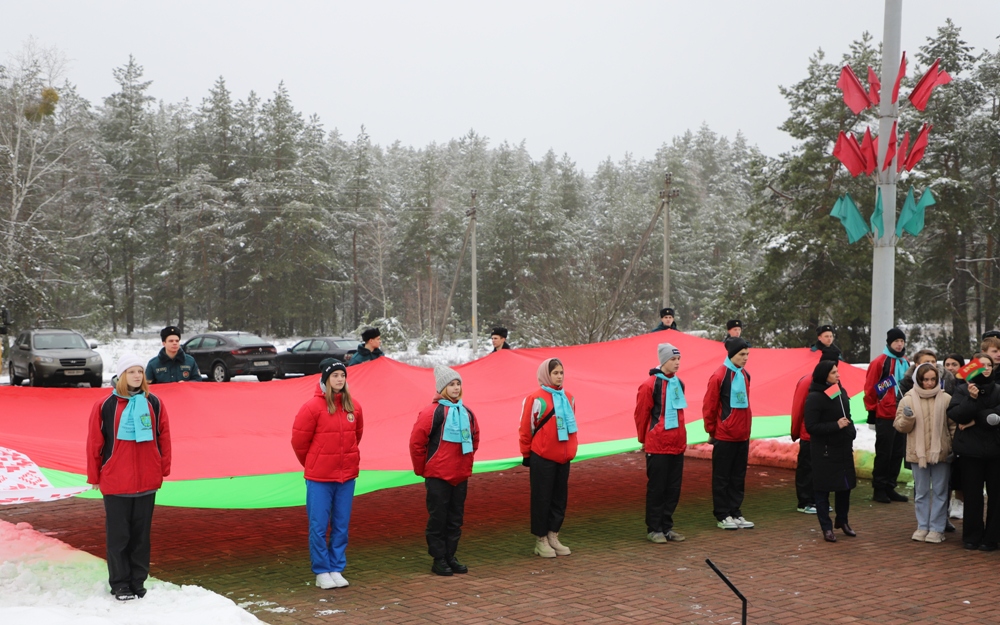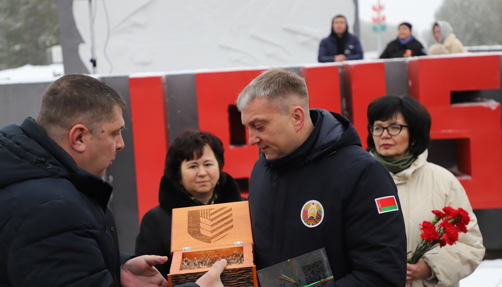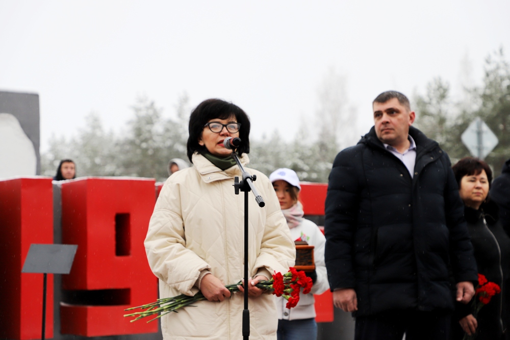 Между двумя точками маршрута участники провели торжественный митинг у мемориального комплекса "Скорбящая мать" на Солигорщине и установили табличку с QR-кодом. Теперь каждый посетитель сможет просканировать ее и узнать историю памятного солигорчанам места Великой Отечественной войны.