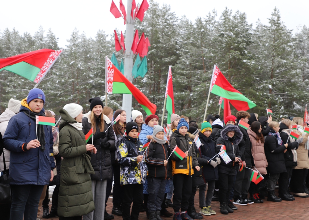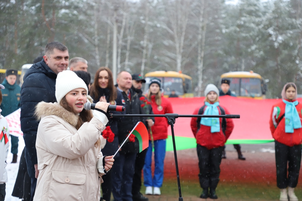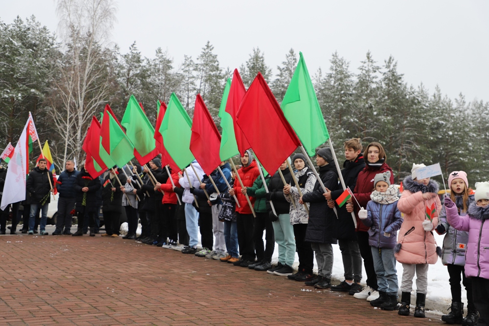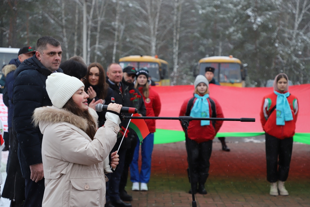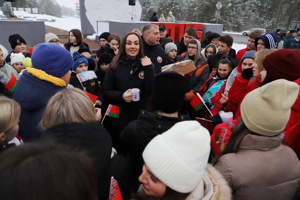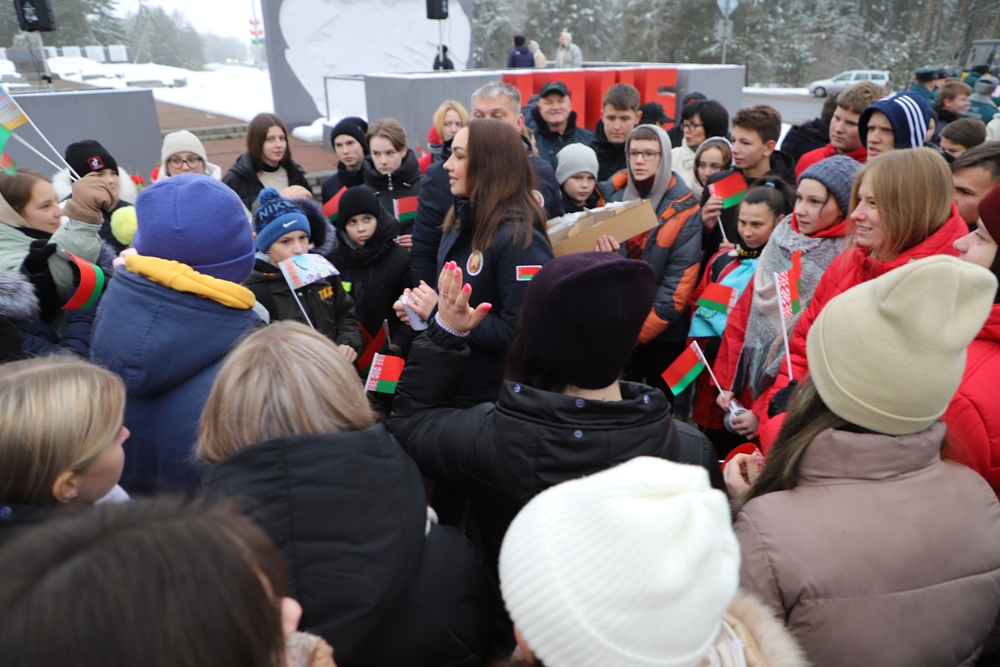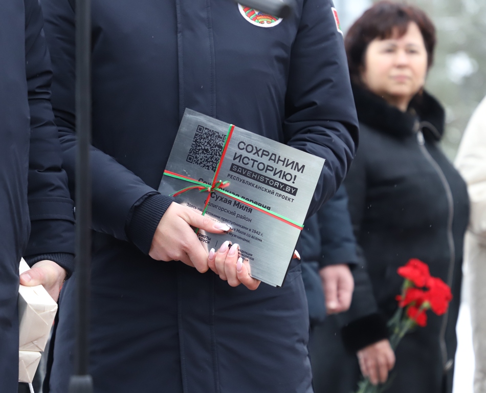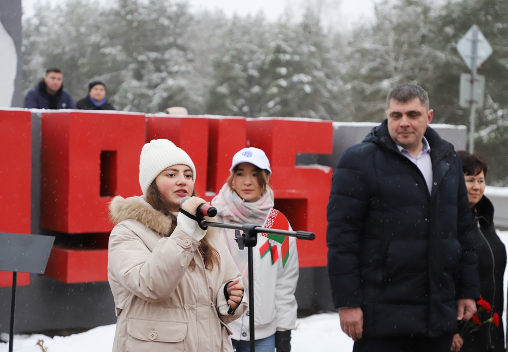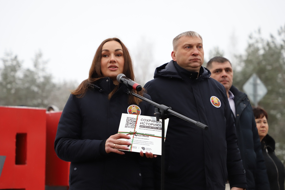 - Мы, молодежь, Солигорского района, занимаем активную позицию, участвуем в молодежных инициативах, самоуправлении, и мы очень рады быть участниками сегодняшнего события, - сказала председатель Парламента детей и учащейся молодежи Солигорска Янина Жигар. - Оно посвящено самому главному - единству белорусского народа. Будущее любой страны зависит от молодежи. Именно она является двигателем развития и прогресса. Еще со школьной скамьи мы учимся находить проблемы других и искать возможности их решения. Мы понимаем, как важно сохранить историческую память и историческую правду. Мы будем стараться любить нашу Беларусь также, как и наши героические предки. Мы помним, что нельзя совершать ошибок прошлого, и мы обещаем, что будем передавать из поколения в поколение чувство благодарности за Великую Победу, за мирное небо и за наше счастливое детство.Оцифровка памяти - это еще одна ценность и уникальность акции "Символ единства". Все маршруты акции, прошедшие через памятные места, памятники, мемориалы, связывает установка памятных табличек, ведущих на республиканский портал, на которых представлена аудиоинформация от первых лиц, очевидцев событий. Одна из них и была установлена участниками акции на входе в мемориальный комплекс "Скорбящая мать".