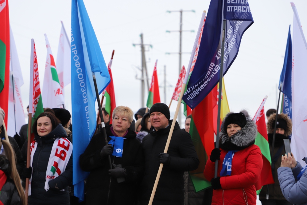 Строители ОАО "Стройтрест № 3 Ордена Октябрьской революции" 27 ноября 2022 года приняли участие в республиканской акция "Символ единства", которая проходит в 118 райцентрах Беларуси при поддержке Федерации профсоюзов Беларуси и Республиканского общественного объединения «Патриоты Беларуси».