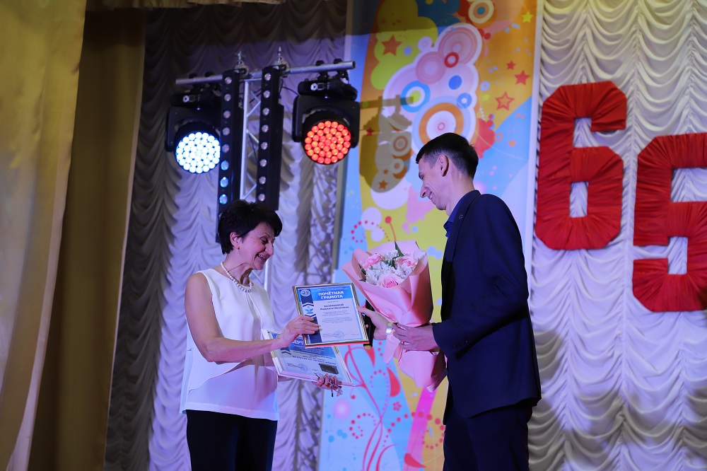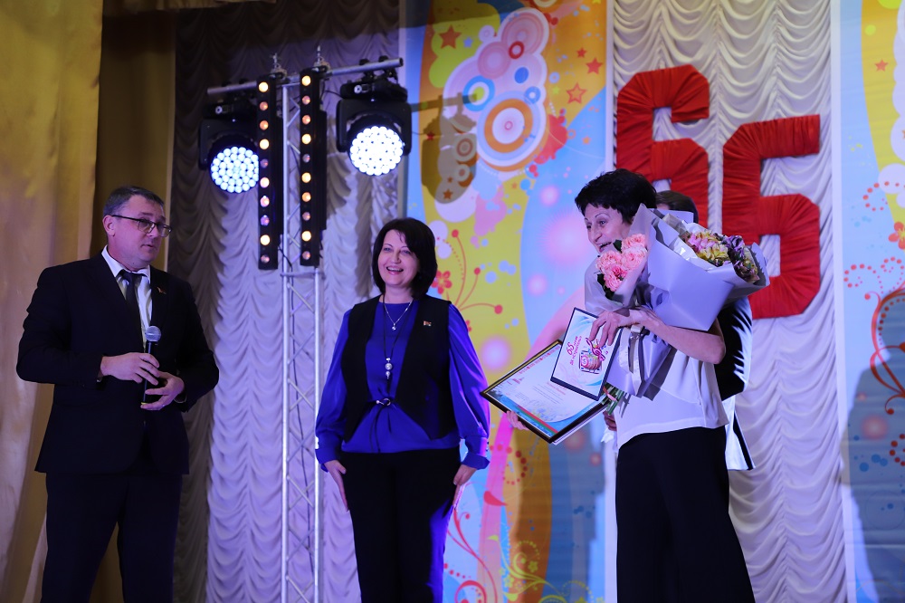 Вручив от всех членов профсоюза стройтреста № 3 подарок, профсоюзный лидер подчеркнул, что в сентябре 2024 года Первичная профсоюзная организация предприятия утвердила Положение о наградах профсоюза. Он призвал руководителей активнее чествовать лучших специалистов к профессиональным датам. А первую награду - Почетную грамоту Первичной профсоюзной организации стройтреста № 3 - Вячеслав Ефимчик вручил заведующей Домом культуры "Строитель" Людмиле Казачковой за многолетний добросовестный труд, за активное участие в профсоюзном движении, большой личный вклад в развитие творческого потенциала молодежи. За 20 лет работы, как подчеркнул профсоюзный лидер, Людмила Казачкова добилась того, что Дом культуры "Строитель" - флагман культурной программы крупнейшего строительного предприятия республики.