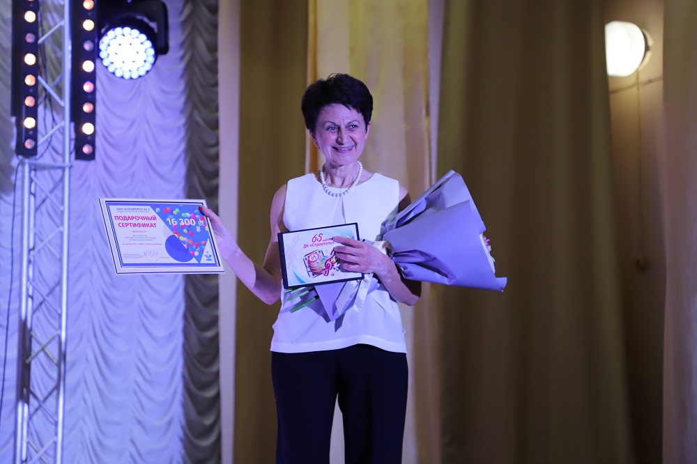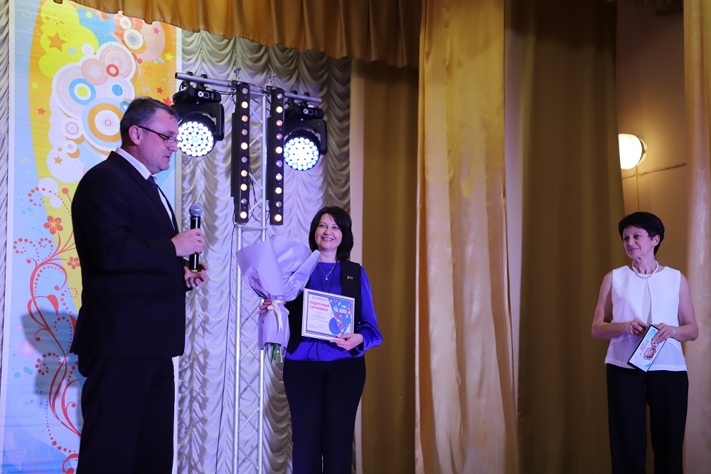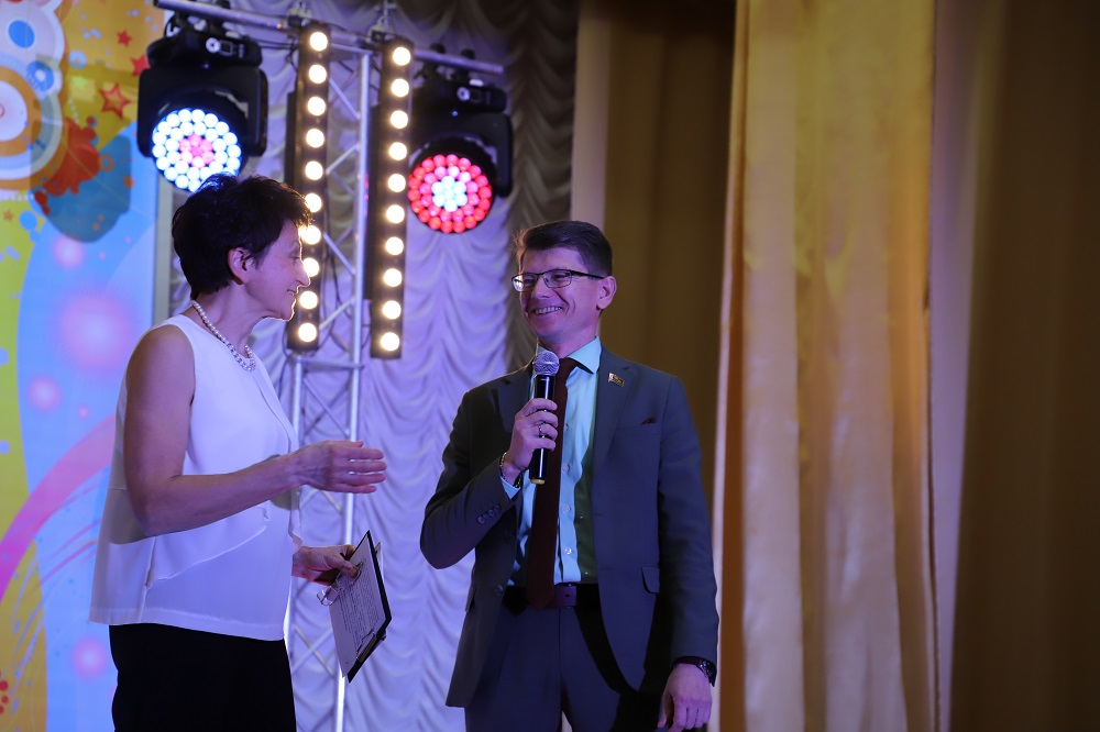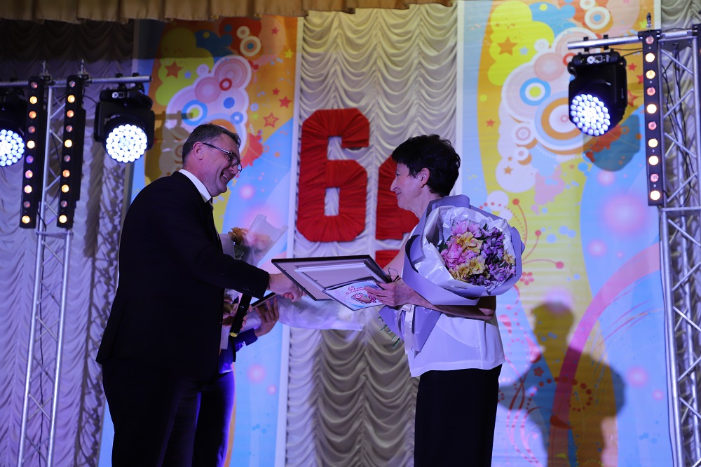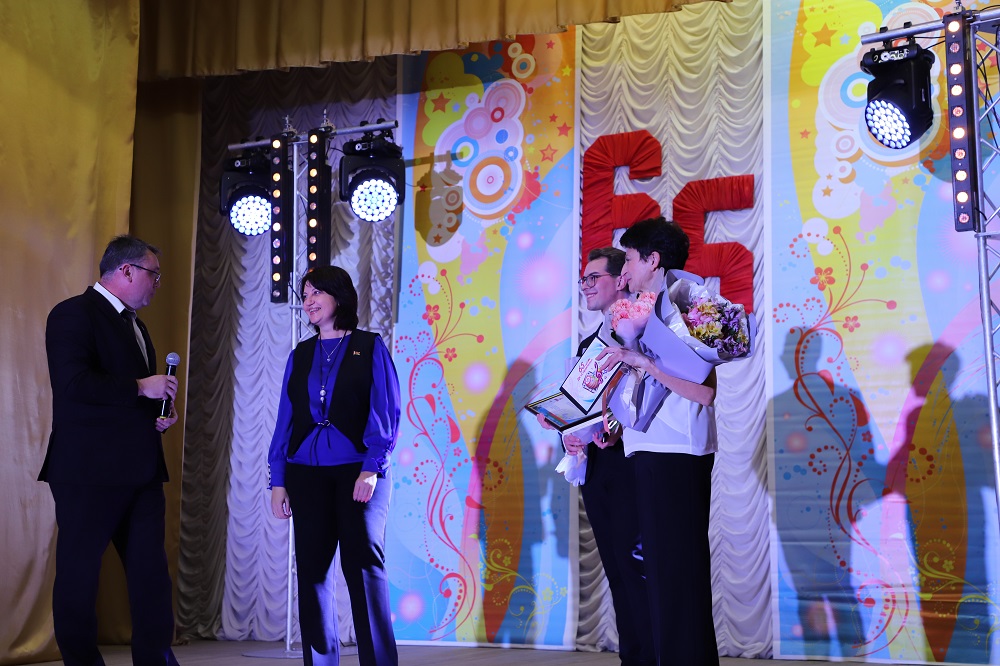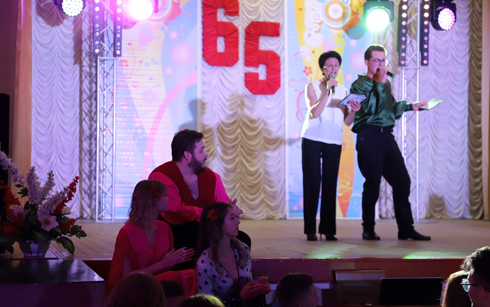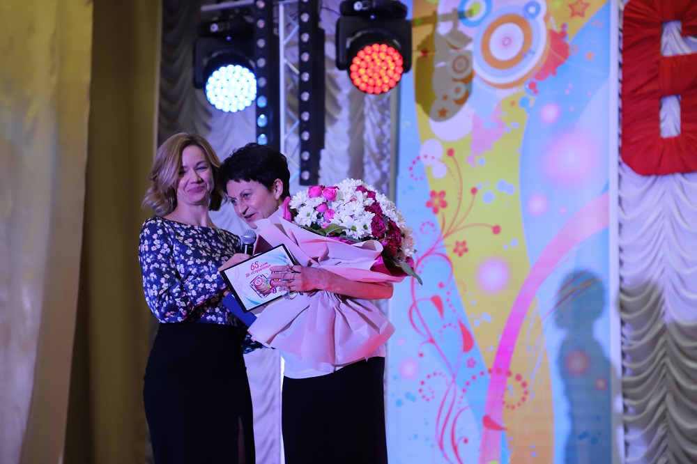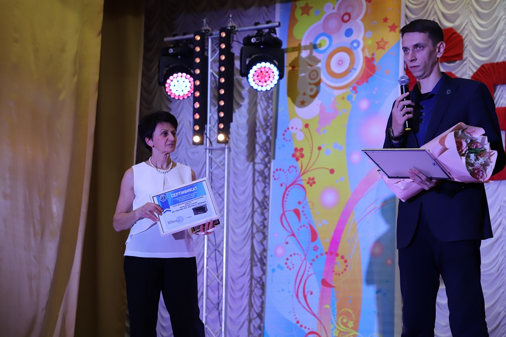 Очень трогательно и тепло Людмила Казачкова с торжественной сцены поздравила своих бывших коллег, которые много лет дарили строителям и их семьям радость творчества: художественный руководитель Ирина Вайтович (2007 - 2022 г.г.), культорганизатор Наталья Тягунович (2005 - 2023 г.г.). Людмила Казачкова выразила слова признательности за совместный вклад в популяризацию профессии строителя, многолетнее освещение культурной жизни предприятия и поздравила с 65-летием ровесника Дома культуры "Строитель" сетевое издание предприятия str3.by, правоприемника старейшей многотиражной газеты Минской области "За коммунистический труд" (1959 - 1991 г.г.), "Строитель Солигорска" (1991 - 2019 г.г.) с выходом в свет первого номера газеты (7 ноября 1959 года), а также поблагодарила за совместную творческую работу заместителя начальника участка полиграфических услуг аппарата дирекции Андрея Моисеенко.