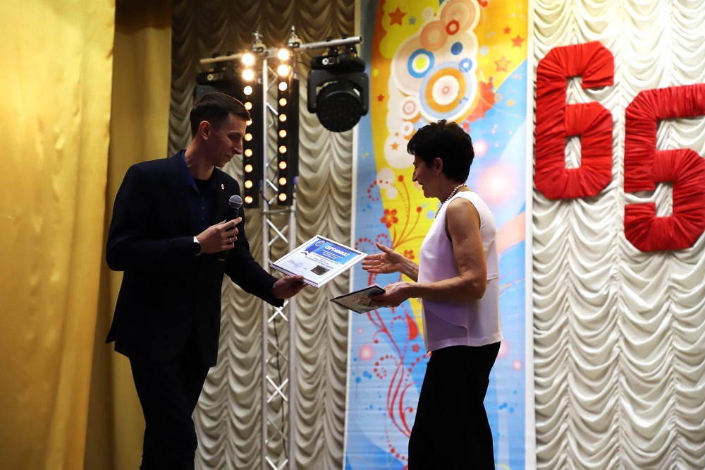 В подарок к 65-летию Дома культуры «Строитель» Юрий Олехнович преподнес подарочный сертификат на сумму более 16000 рублей на укрепление материально-технической базы. За добросовестный многолетний труд, высокий профессионализм и в связи с 65-летием Дома культуры «Строитель» Почетной грамотой ОАО «Стройтрест # 3 Ордена Октябрьской революции» награждена заведующая Домом культуры "Строитель" Казачкова Людмила Ивановна. Также Почетной грамотой стройтреста № 3 награжден специалист по работе с молодежью Станислав Макаревич.
