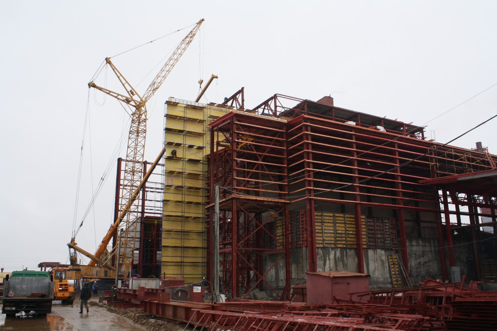 — Учитывая, что мы в общестроительном конвейере на этом объекте третье-четвёртое звено, соответственно, все сложности сказываются и на наших сроках, — пояснил В.Е. Зайцев. — Конечно, задача, которая стоит перед нами, архисложная. Вопрос даже не в объёмах работ: во-первых, мы вынуждены выполнять монтаж в условиях очень стеснённой стройплощадки, на которой нужно смонтировать не менее 600 тонн изделий из металла и технологического оборудования; во-вторых, технологически сложно выполнять соответствующие работы по фундаментам, конструкциям, оборудованию и электрике. Но задача поставлена — будем решать её совместными усилиями со строителями. Как только будет завершен монтаж металлоконструкций и оборудования — будут организованы пуско-наладочные работы.