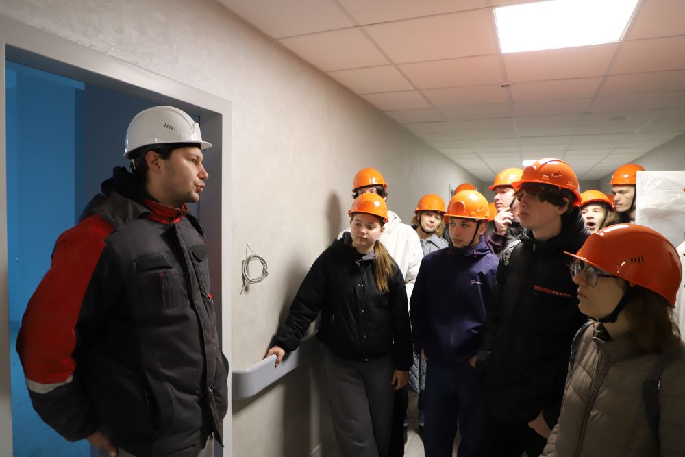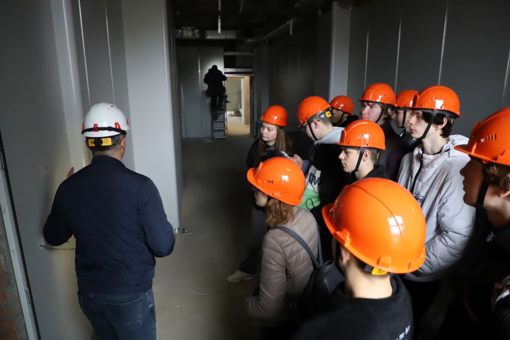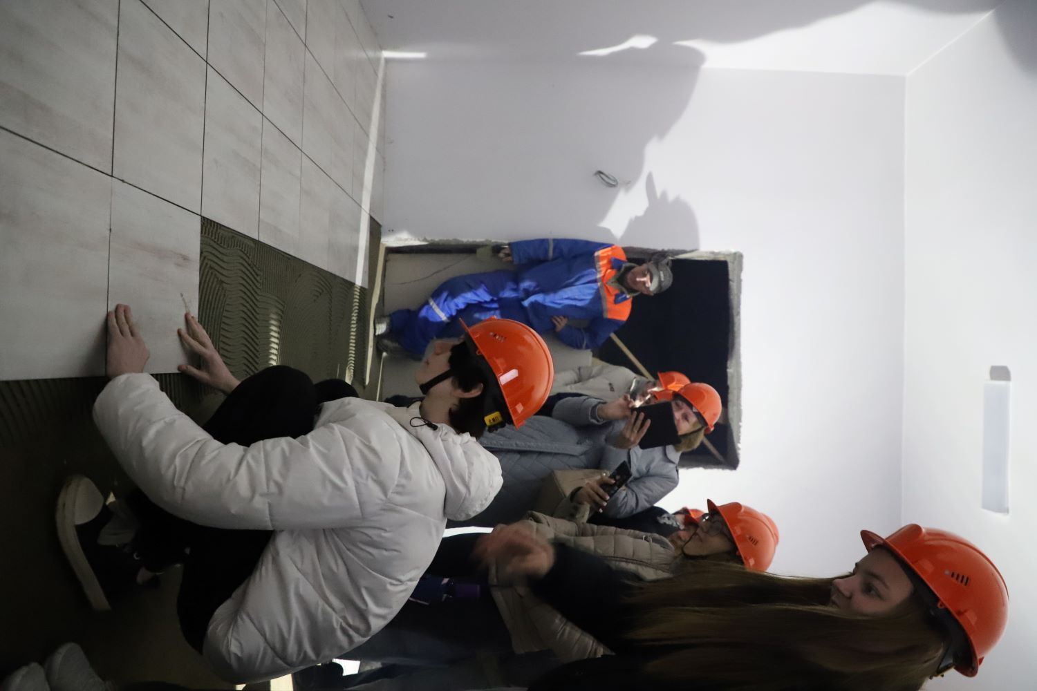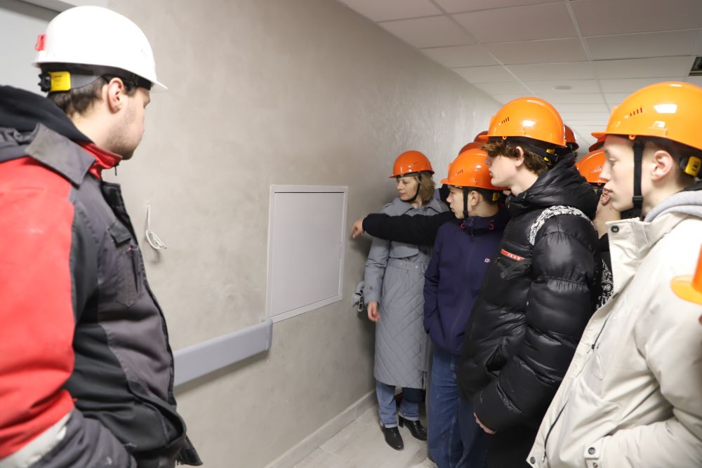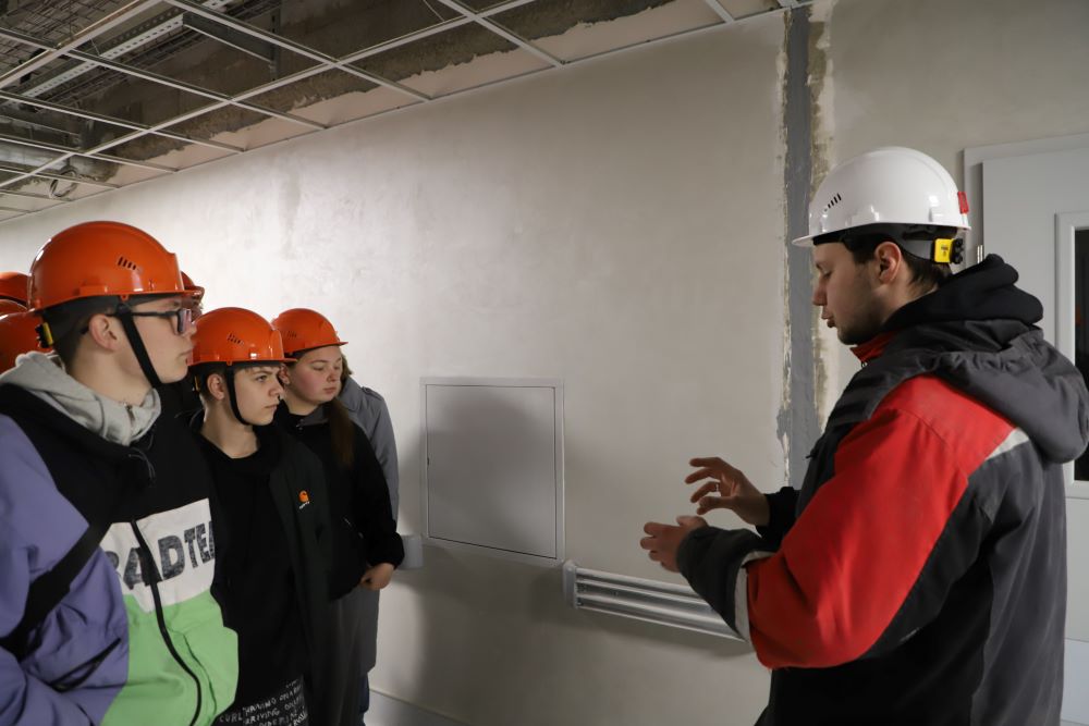 Максим Крутько, начавший работать в СУ-137 молодым специалистом в феврале 2025 года после окончания Минского энергетического колледжа по специальности "Промышленное и гражданское строительство", отлично справился с ролью экскурсовода для ребят. Из беседы с ним учащиеся узнали, что мастер СУ-137 на объекте отвечает за организацию отделочных работ не только силами СУ-137, но и субподрядчиков (а это около 200 человек). Студены узнали о важных требованиях к работе мастера: соблюдении техники безопасности строителями, операционном контроле, ведении исполнительной документации, обеспечении необходимыми материалами, соблюдении недельных и месячных графиков строительно-монтажных работ, культуре труда.