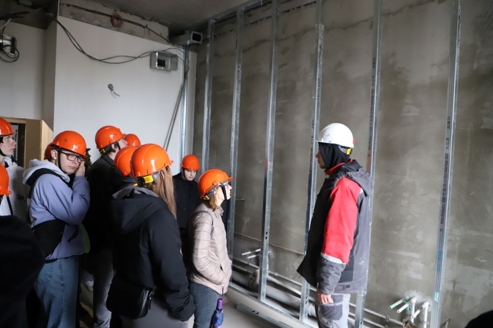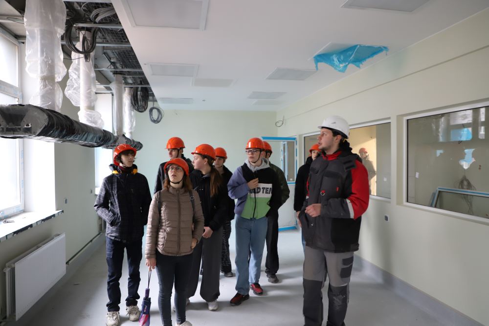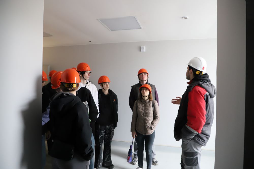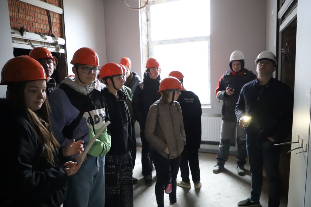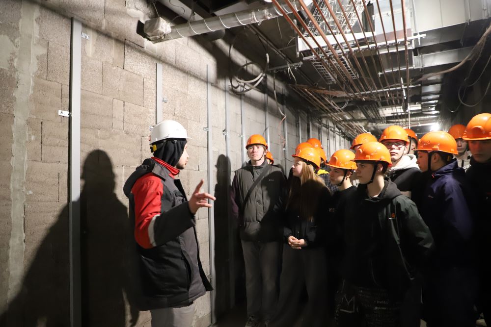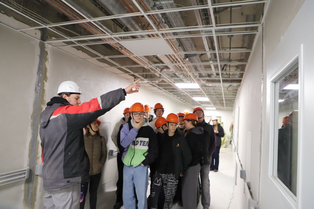Максим Крутько, начавший работать в СУ-137 молодым специалистом в феврале 2025 года после окончания Минского энергетического колледжа по специальности "Промышленное и гражданское строительство", отлично справился с ролью экскурсовода для ребят. Из беседы с ним учащиеся узнали, что мастер СУ-137 на объекте отвечает за организацию отделочных работ не только силами СУ-137, но и субподрядчиков (а это около 200 человек). Студены узнали о важных требованиях к работе мастера: соблюдении техники безопасности строителями, операционном контроле, ведении исполнительной документации, обеспечении необходимыми материалами, соблюдении недельных и месячных графиков строительно-монтажных работ, культуре труда.