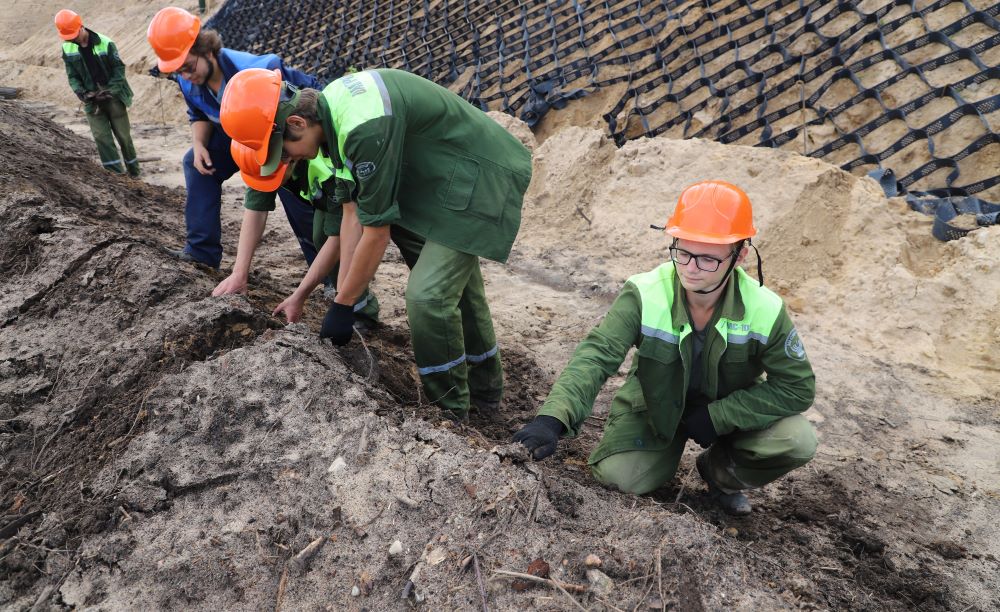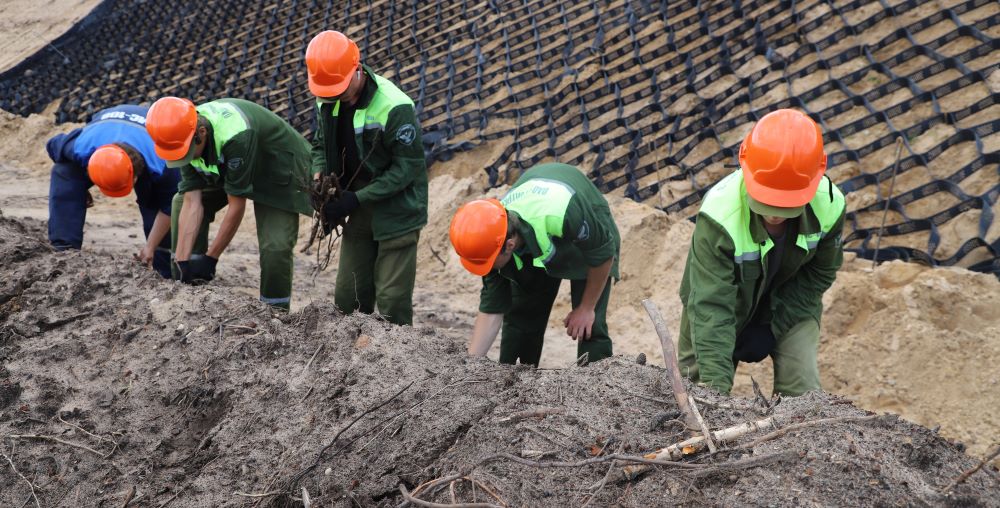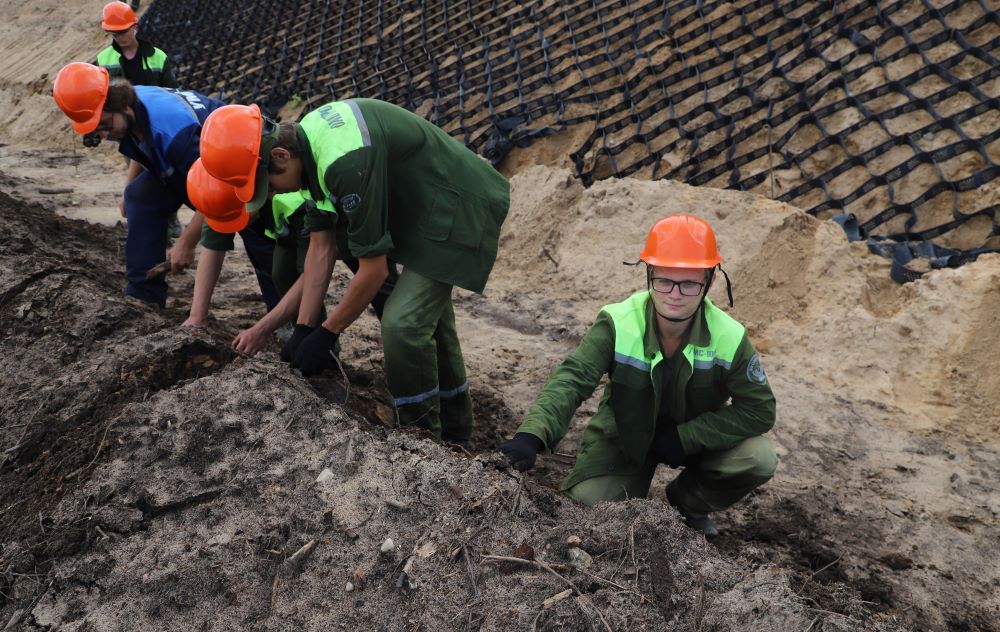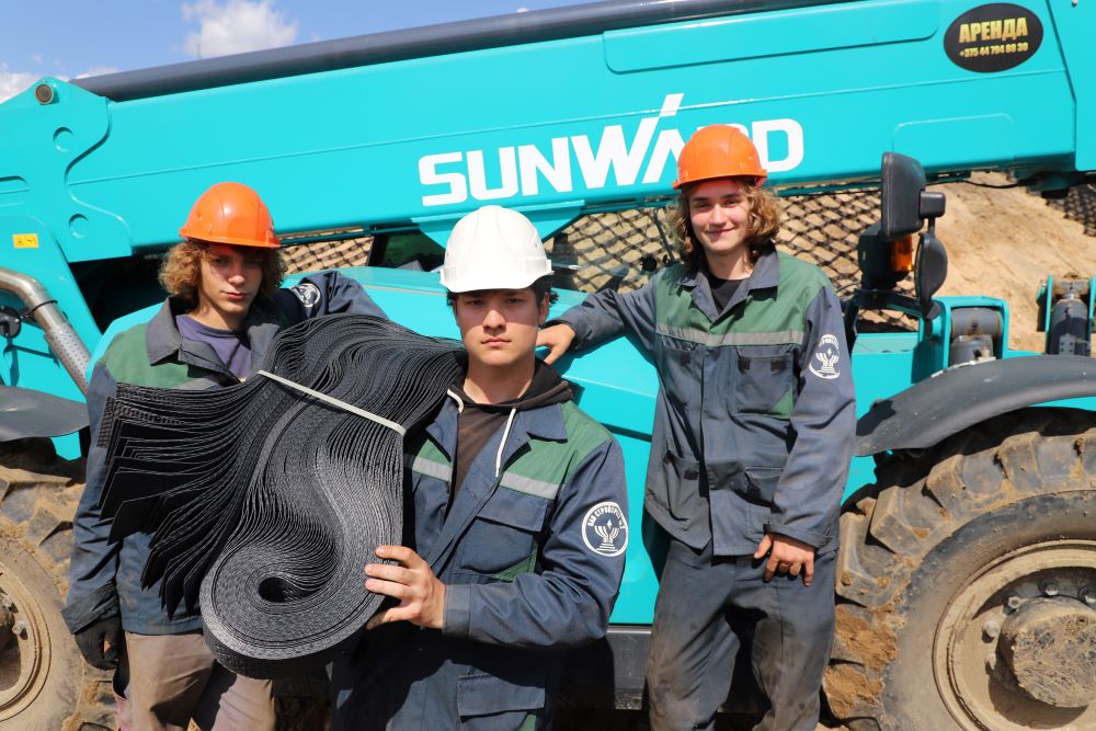 - Трудимся с 7 июля, закреплены за одной из бригад Управления механизации и спецработ стройтреста № 3, - рассказал str3.by студент II курса Солигорского горно-химического техникума, будущий техник-электрик Александр Степурко. - В составе нашего звена стройотряда 6 бойцов. Нам доверили подсобные работы на вертикальной планировке. По сути, это искусственное изменение рельефа местности для создания хороших условий строительства, прокладки коммуникаций и благоустройства территории. Работы могут включать подсыпку грунта, устройство газонов, выкорчевку, создание уклонов для отвода воды и планировочных отметок для строительства. Чуть ранее, на строительстве другого объекта - молочно-товарного комплекса до 3000 голов дойного стала возле деревни Садовая Клецкого района - мы занимались устройством ограждения комплекса. В нашем звене будущие горные машинисты, техники-технологи, специалисты по разработке месторождений, электроснабжению, технической эксплуатации машин и механизмов.