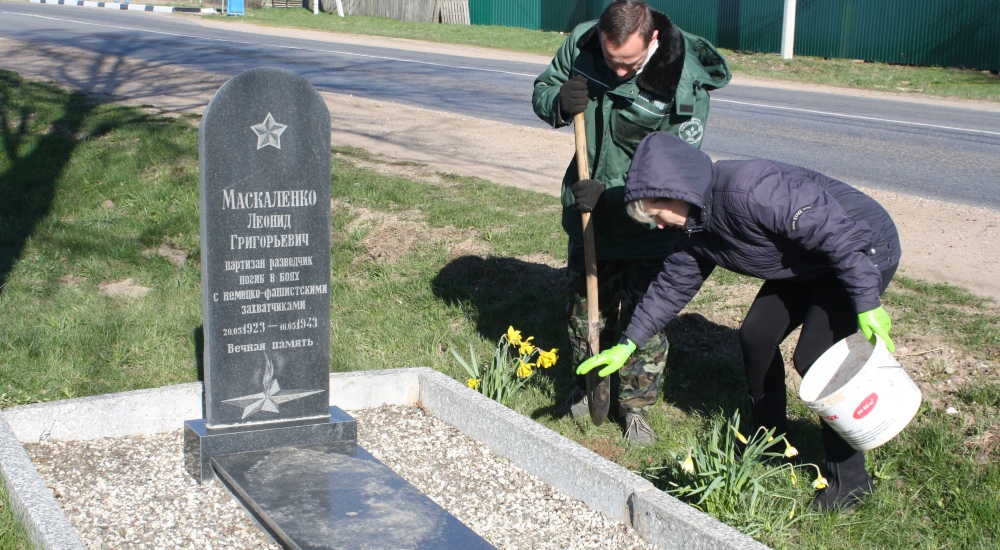 Первичная профсоюзная организация ОАО «Стройтрест № 3 Ордена Октябрьской революции» сразу откликнулась на призыв акций. 21 апреля её представители, вооружившись необходимым инвентарём и краской, выехали в деревню Косыничи Краснодворского сельсовета Солигорского района. Они привели в порядок две могилы: партизана и разведчика Леонида Григорьевича Москаленко (погиб 16 мая 1943 года в боях с немецко-фашистскими захватчиками, не дожив до своего 20-летия всего четыре дня; похоронен у дороги на Красную Слободу); партизана Ивана Ивановича Загоровского (погиб 23 мая 1944 года, в возрасте 21 года; похоронен на кладбище д. Косыничи).