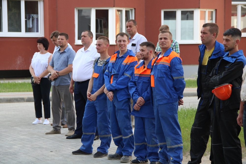 И снова в подтверждение слов представителей колледжа - пример со строек стройтреста № 3. Посмотрите, какую красоту возвели именно плотники-бетонщики стройтреста № 3, - монолитно-каркасный дом со свободной планировкой на 322 квартиры по улице Судиловского, 21, который на днях торжественно ввели в эксплуатацию. Например, в наиболее активные месяцы строительства дома в 2020 году бригады плотников-бетонщиков СУ-55 стройтреста № 3 принимали для укладки по 612 кубов бетона в месяц. Производительность труда на одного плотника-бетонщика была обеспечена на уровне 1,37 метров кубических в смену, а сметные сметные нормы выработки составляли от 150% до 190% принятого бетона. Соответственно этим показателя и заработок был отличный у плотников бетонщиков - от 1700 до 1930 рублей в месяц на каждого члена бригады.