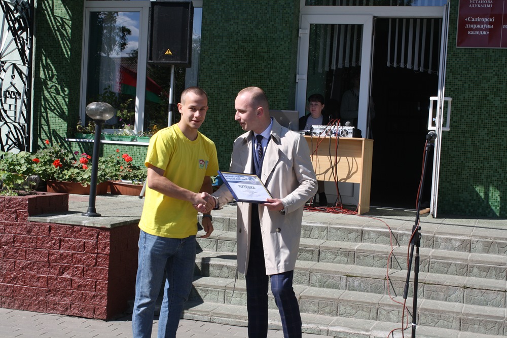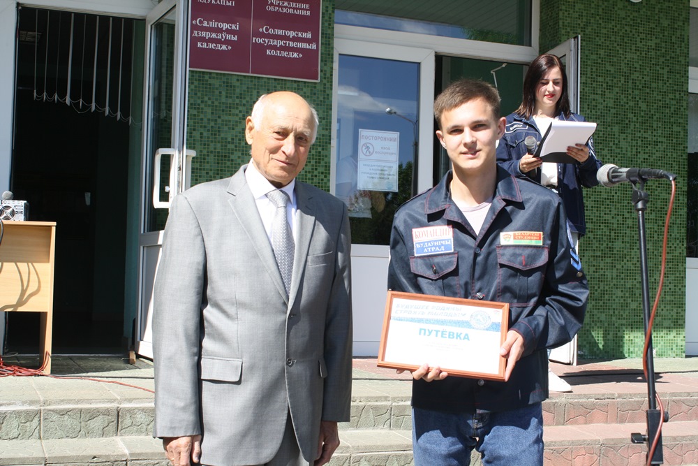 В первый день лета 2021 года в Солигорском государственном колледже состоялась торжественная церемония вручения путевок студенческим отрядам. Такой формат решили сделать традиционным накануне летнего трудового семестра в районном комитета ОО "БРСМ", которому принадлежит инициатива именно так напутствовать участников студотрядов. Этим летом они проявят первые навыки профессиональной деятельности, обретут уверенность в собственных силах, получат возможность заработать свои первые деньги, научаться работать в команде.