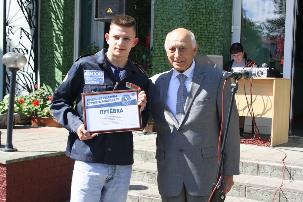 Путевки трем строительным студенческим отрядам "Победа", "Импульс" и "Гранит" вручил Николай Ашейчик, посвятивший стройтресту № 3 53 года своей жизни, из них более 35 лет он возглавлял предприятие.