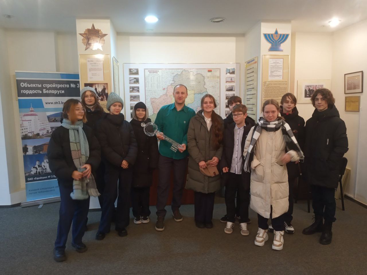 Работа с нашей молодежью начинается со школы, обычного учителя, классного руководителя, директора учебного заведения. В частности, в стройтресте № 3 практикуются встречи с экскурсиями для средних и старших классов в музее истории и трудовой славы стройтреста № 3, где можно познакомиться с историей предприятия, узнать о его достижениях и известных строителях, прославивших третий трест, о самых значимых объектах нашего предприятия, географией строек. С этой целью и посетили музей стройтреста № 3 учащиеся 8 "В" класса гимназии № 1 вместе с классным руководителем Фёдоровой Еленой Михайловной. Знакомство со стройтрестом № 3 состоялось в рамках занятий Школы Активного Гражданина (ШАГ). Мероприятия проекта «ШАГ» в 2023/2024 учебном году пройдут под девизом «Родина моя Беларусь в лицах". И тема этого проекта в ноябре, а именно 23 ноября 2023 года, - «В этой красе величавой есть доля труда моего» (о тружениках промышленности и сельского хозяйства). Она совпала с профориентационной неделей "День с предприятием". Ребята из экскурсии по музею, подготовленной главным редактором сетевого издания str3.by Александром Колесниковым, как раз и узнали людях стройки, их достижениях и вкладе в процветание Солигорска и Беларуси.