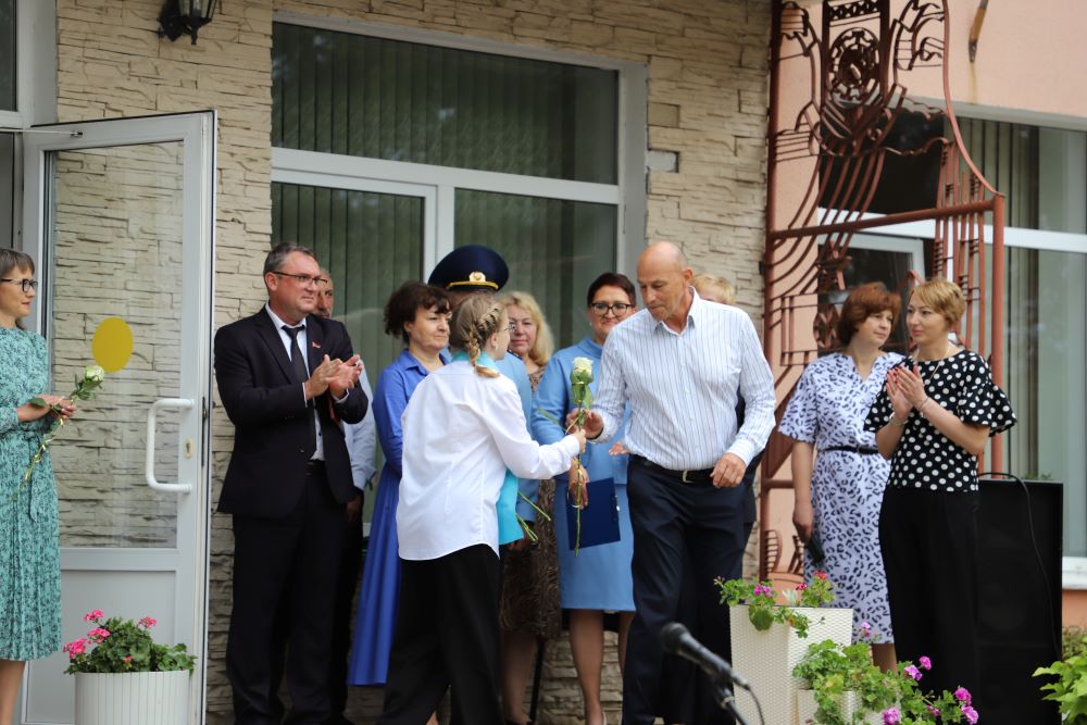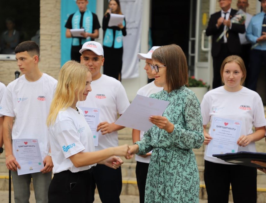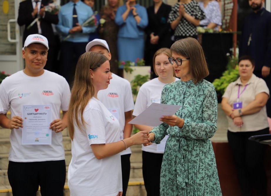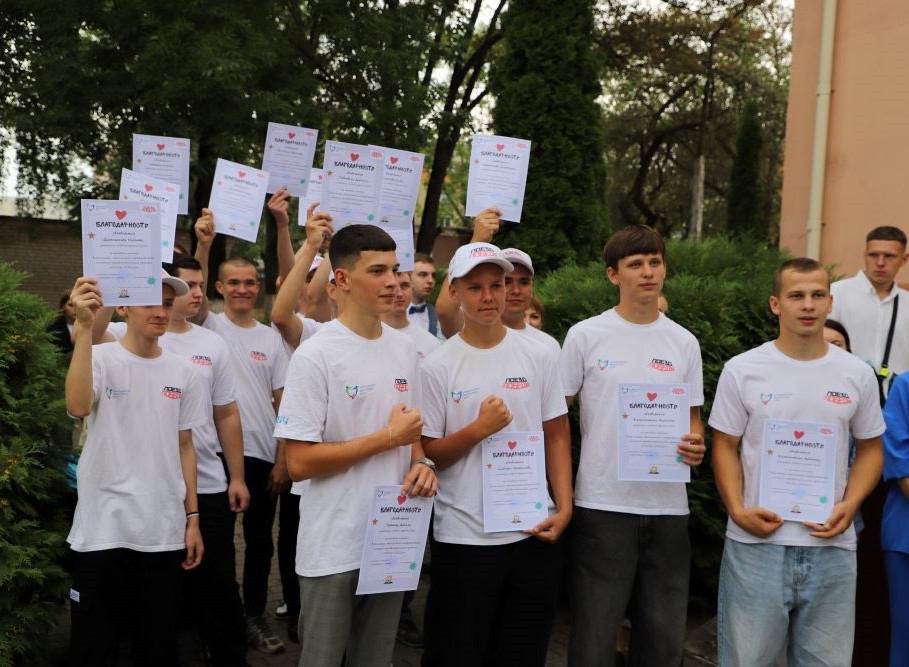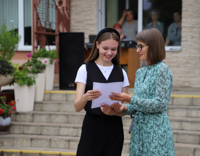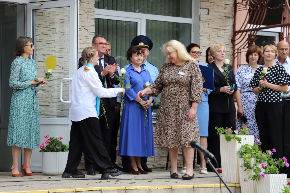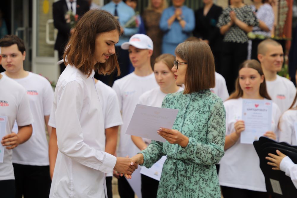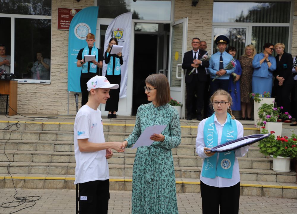 В ходе торжественной линейки Юрий Олехнович и Ольга Ганчар отметили труд студентов групп м-22п, 422п политехнического отделения в составе стройотряда, вручили им подарочные сертификаты, а также Благодарственные письма их родителям. Это Владислав Тонко, Стефан Писарик, Андрей Котяк и Егор Куликовский.