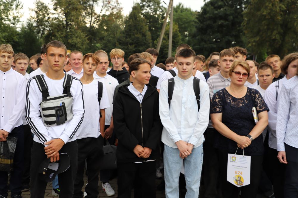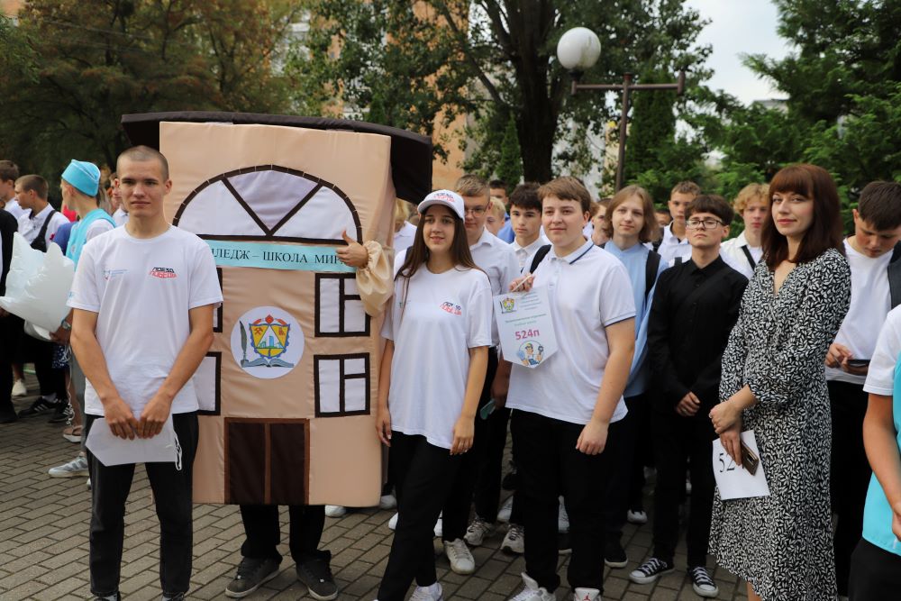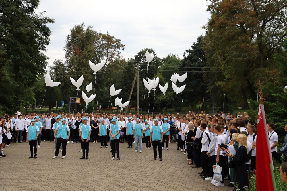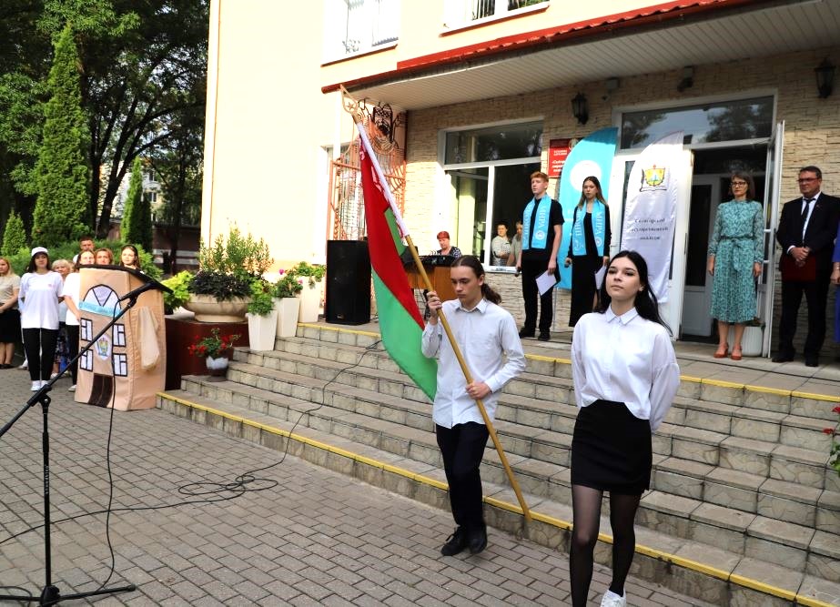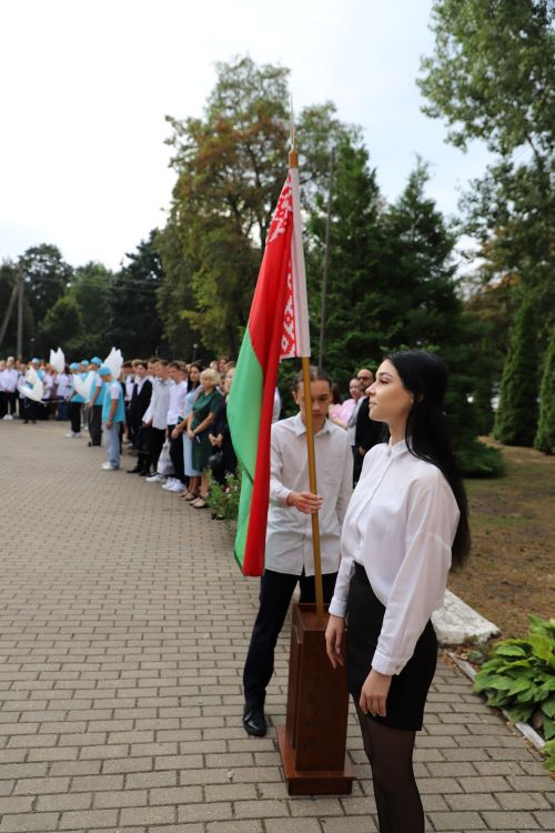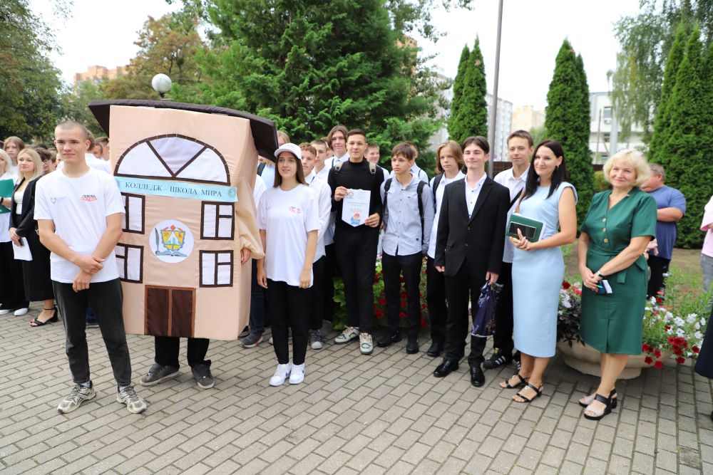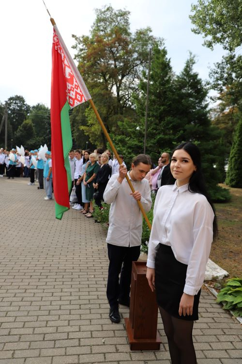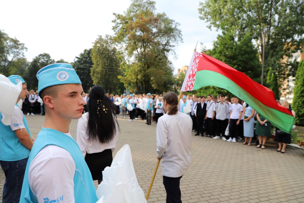 Почетного права вынести государственный флаг Республики Беларусь на торжественную линейку были удостоены учащиеся, поступившим в колледж с самым высоким баллом аттестата: Максиму Петраковскому, учащемуся группы 424, и Анастасии Рублевской, учащейся ДО241-с.